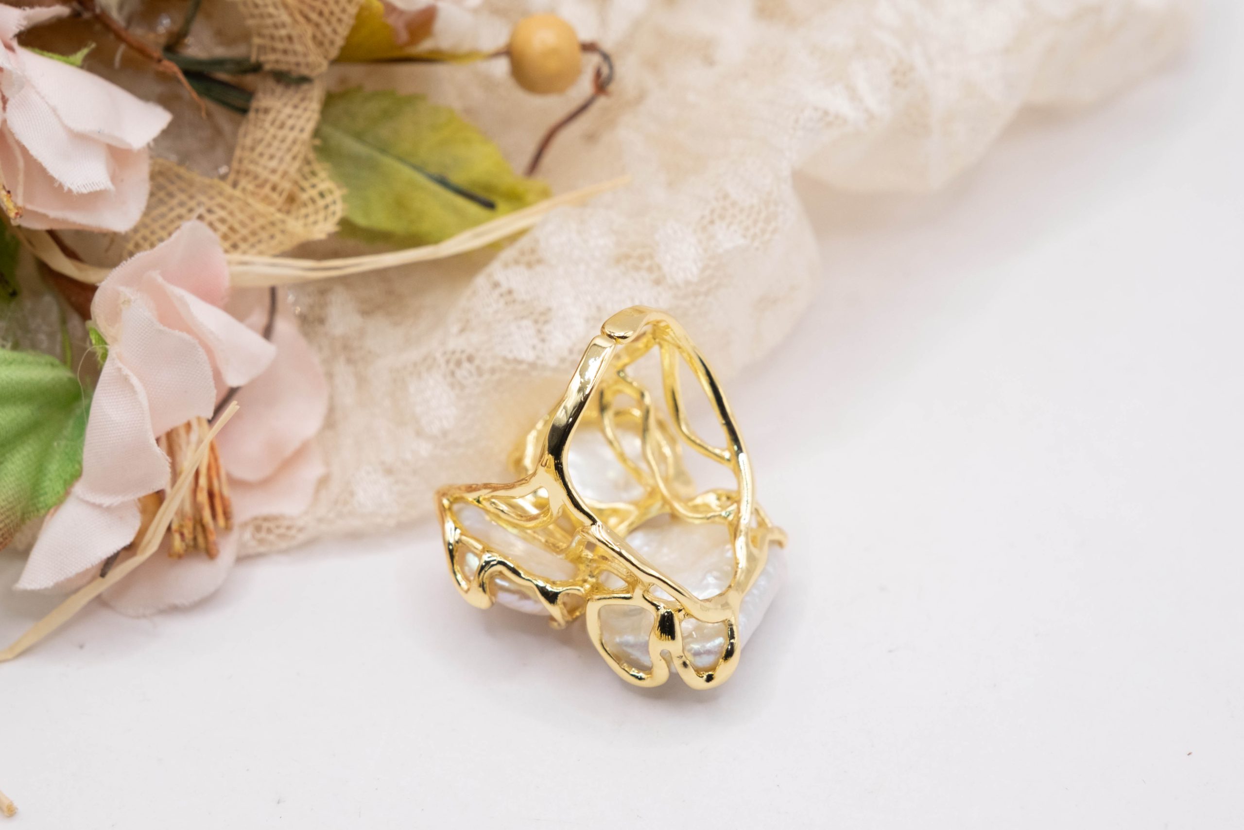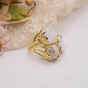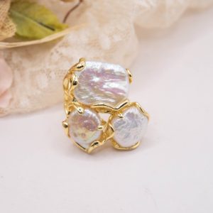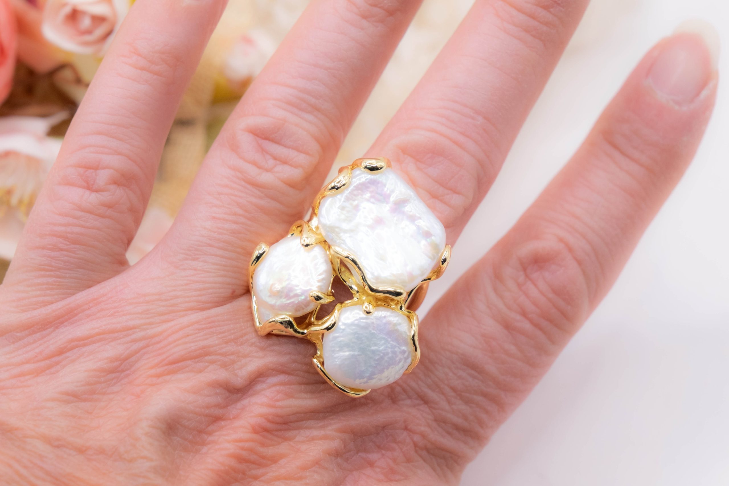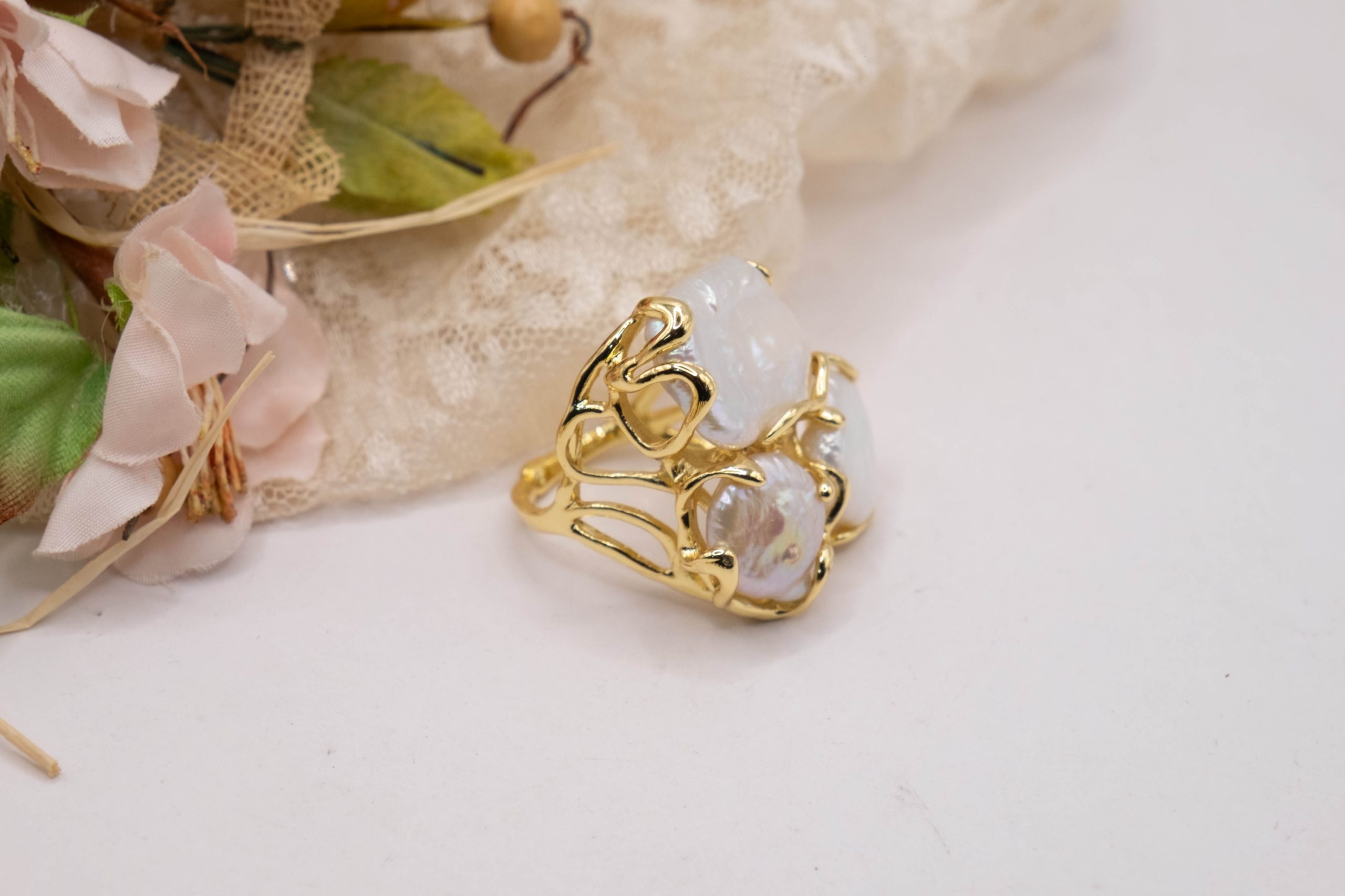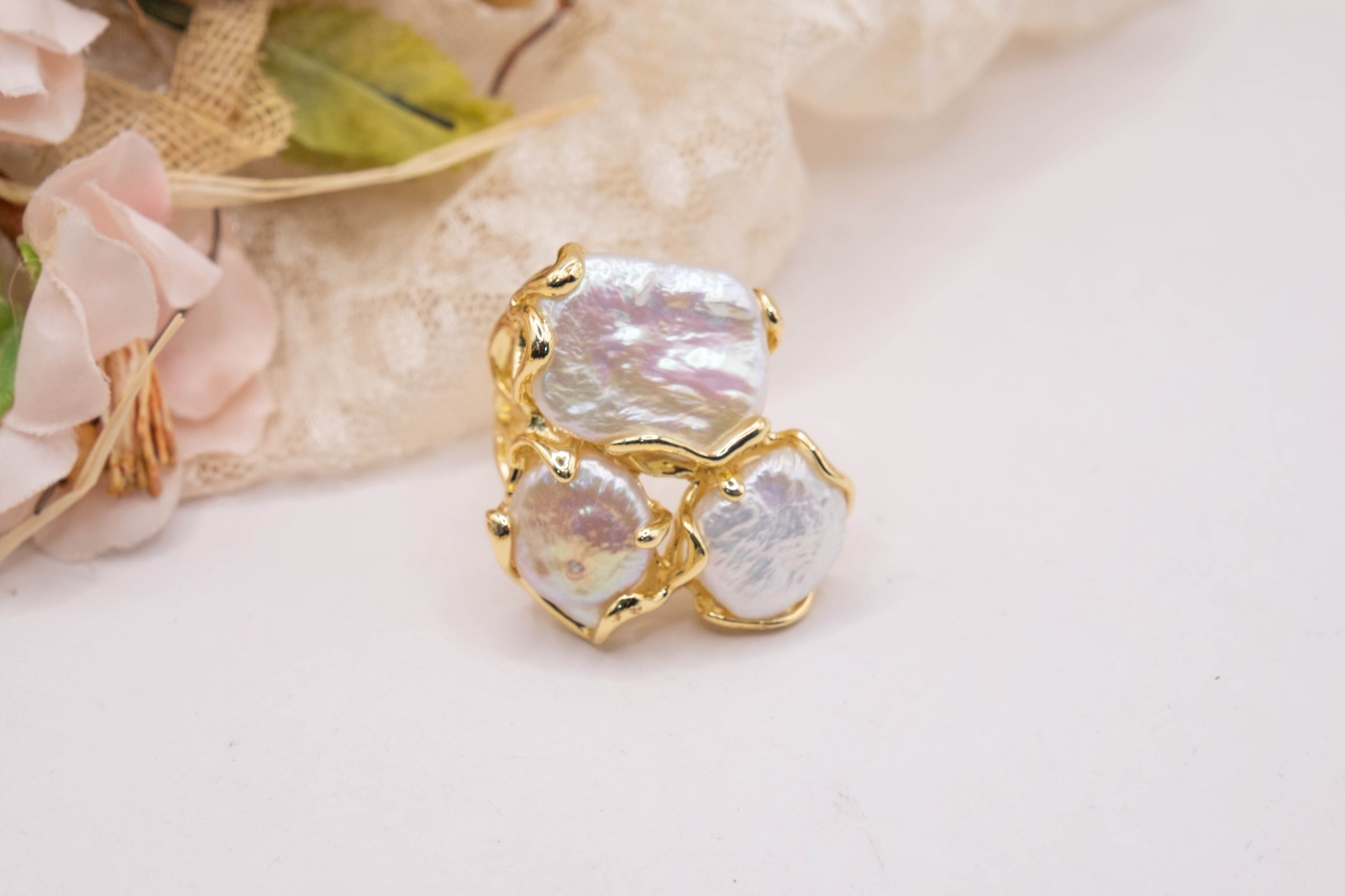 Anello artigianale con 3 perle naturali