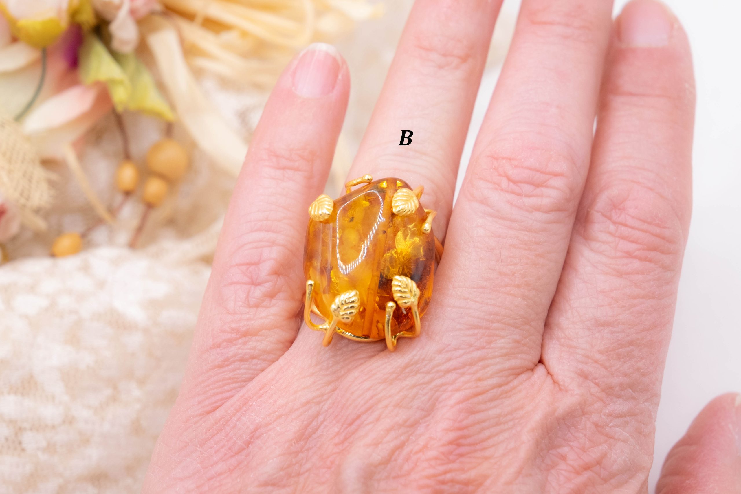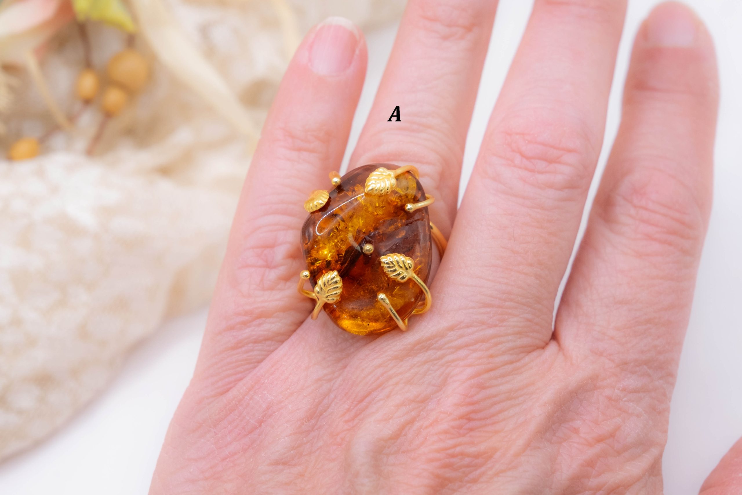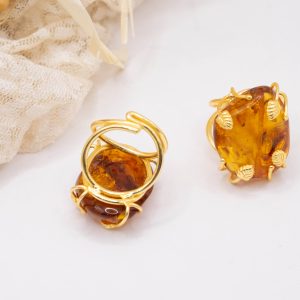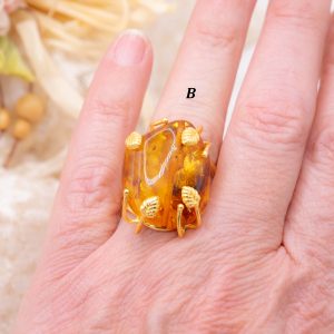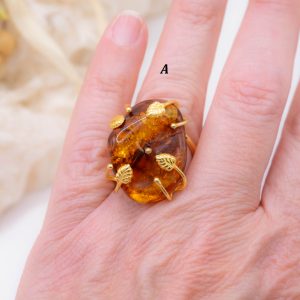 Anello Artigianale Ambra del Baltico in Ottone Dorato