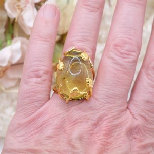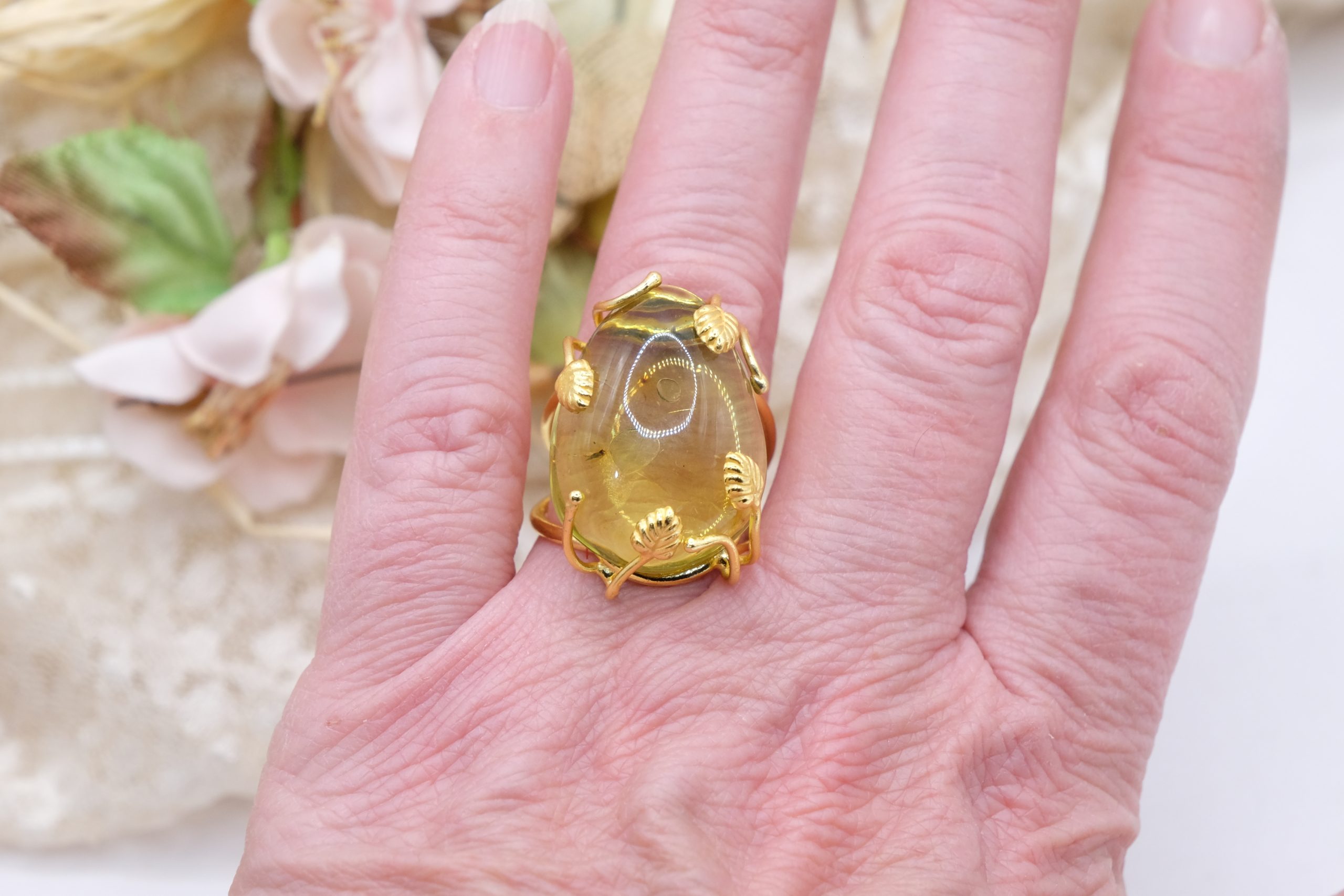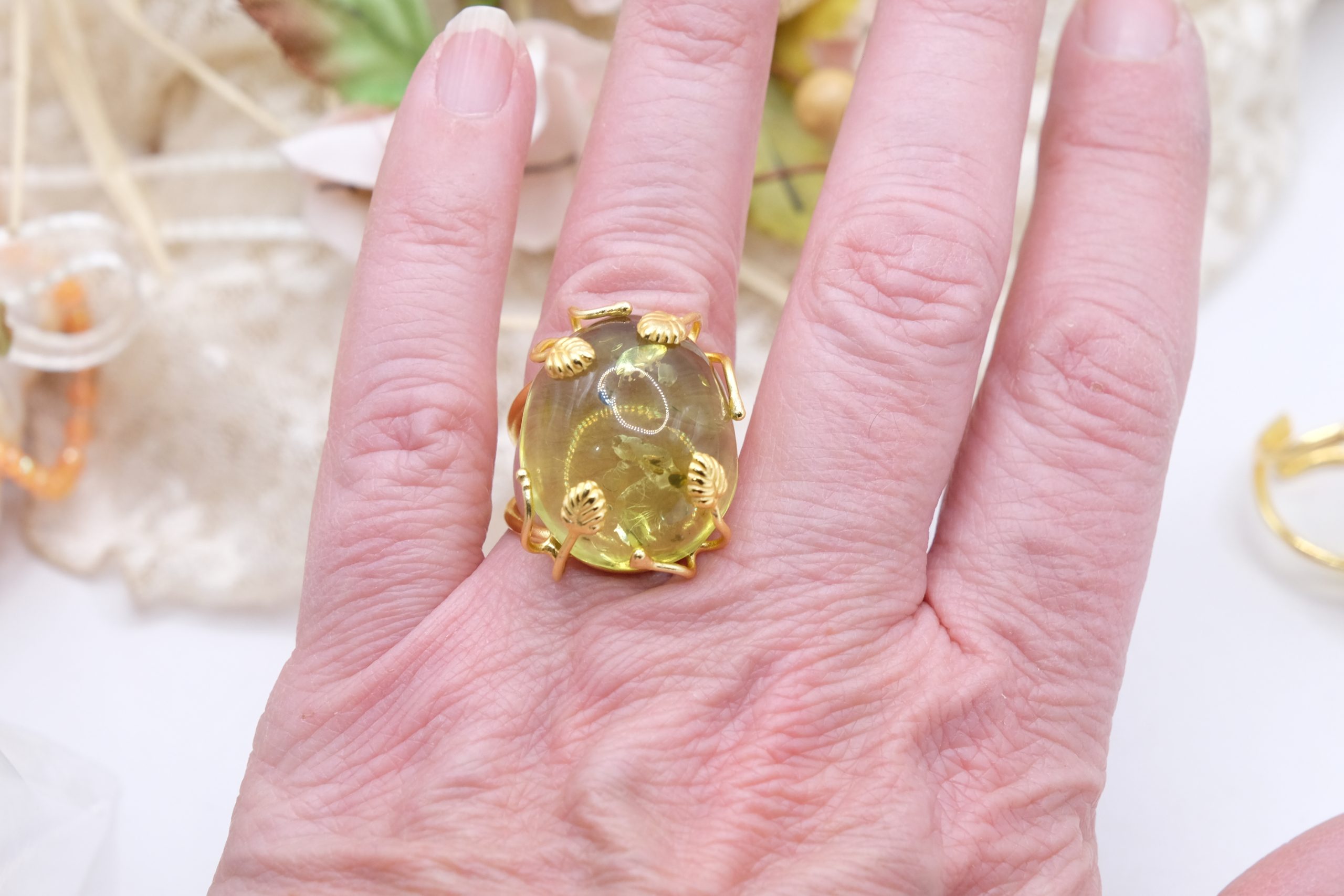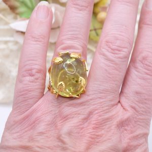 Elegante anello con ambra di Santo Domingo, rara e preziosa, naturale su montatura in ottone placcato oro