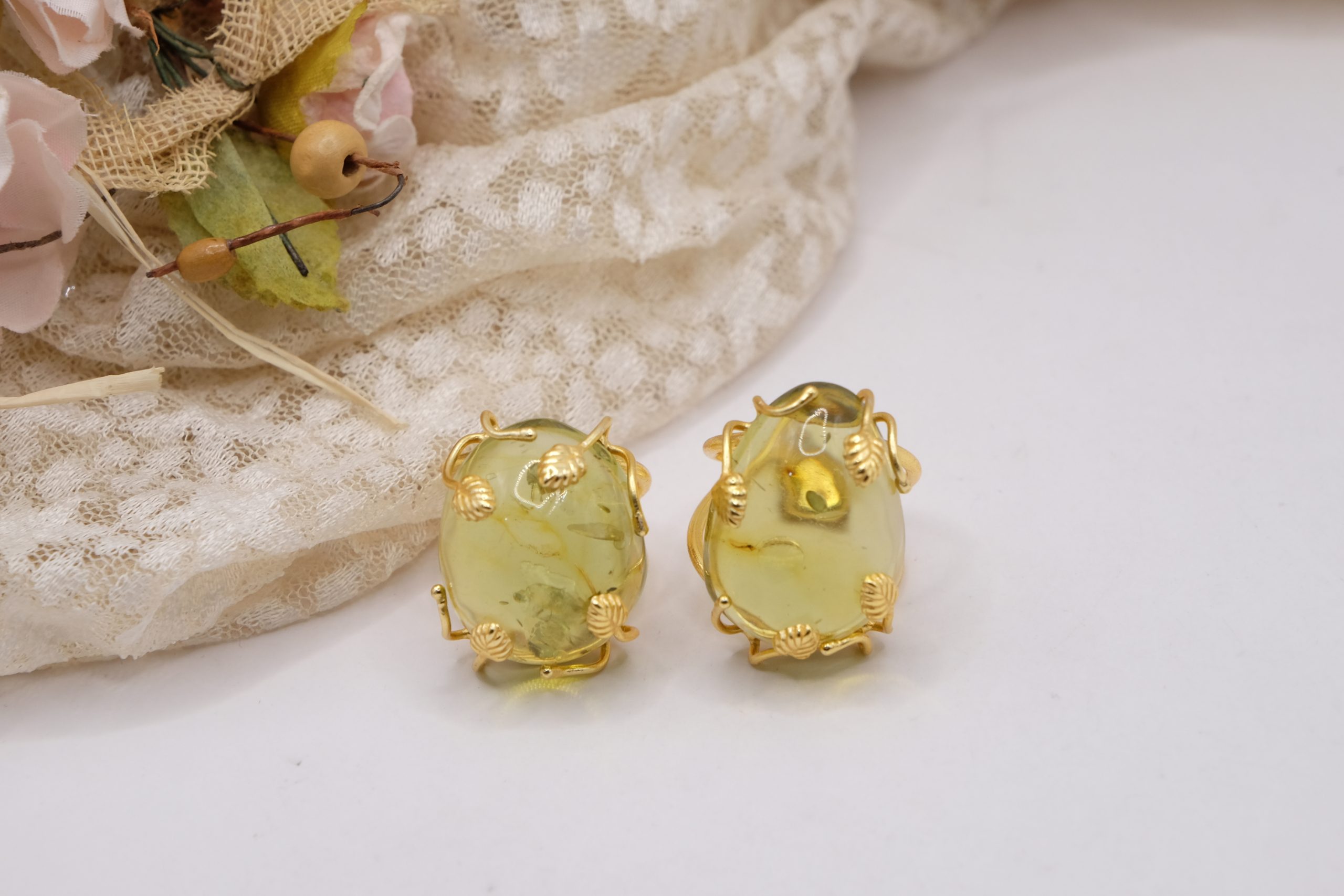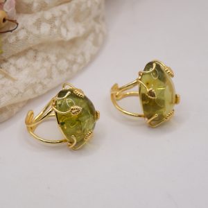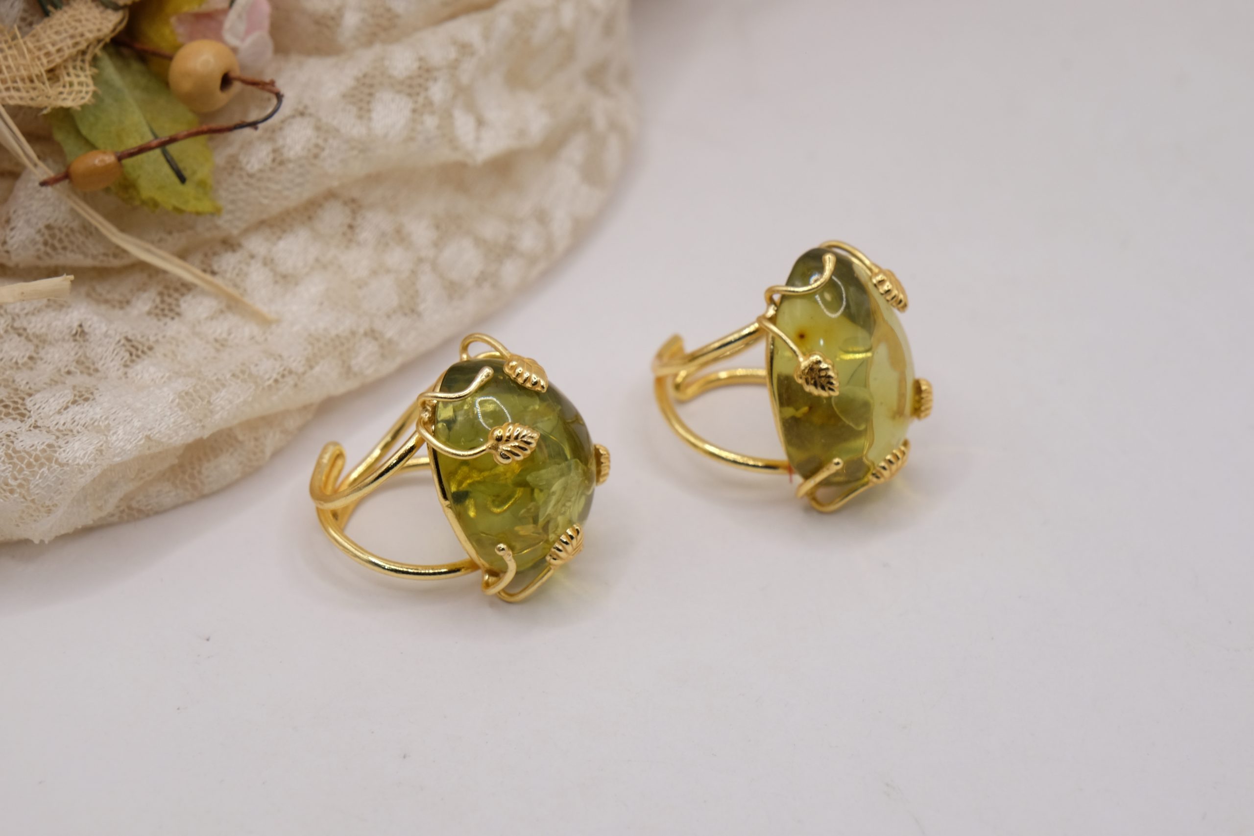 Anello Artigianale in Ambra Verde Dominicana e Ottone Dorato ✨