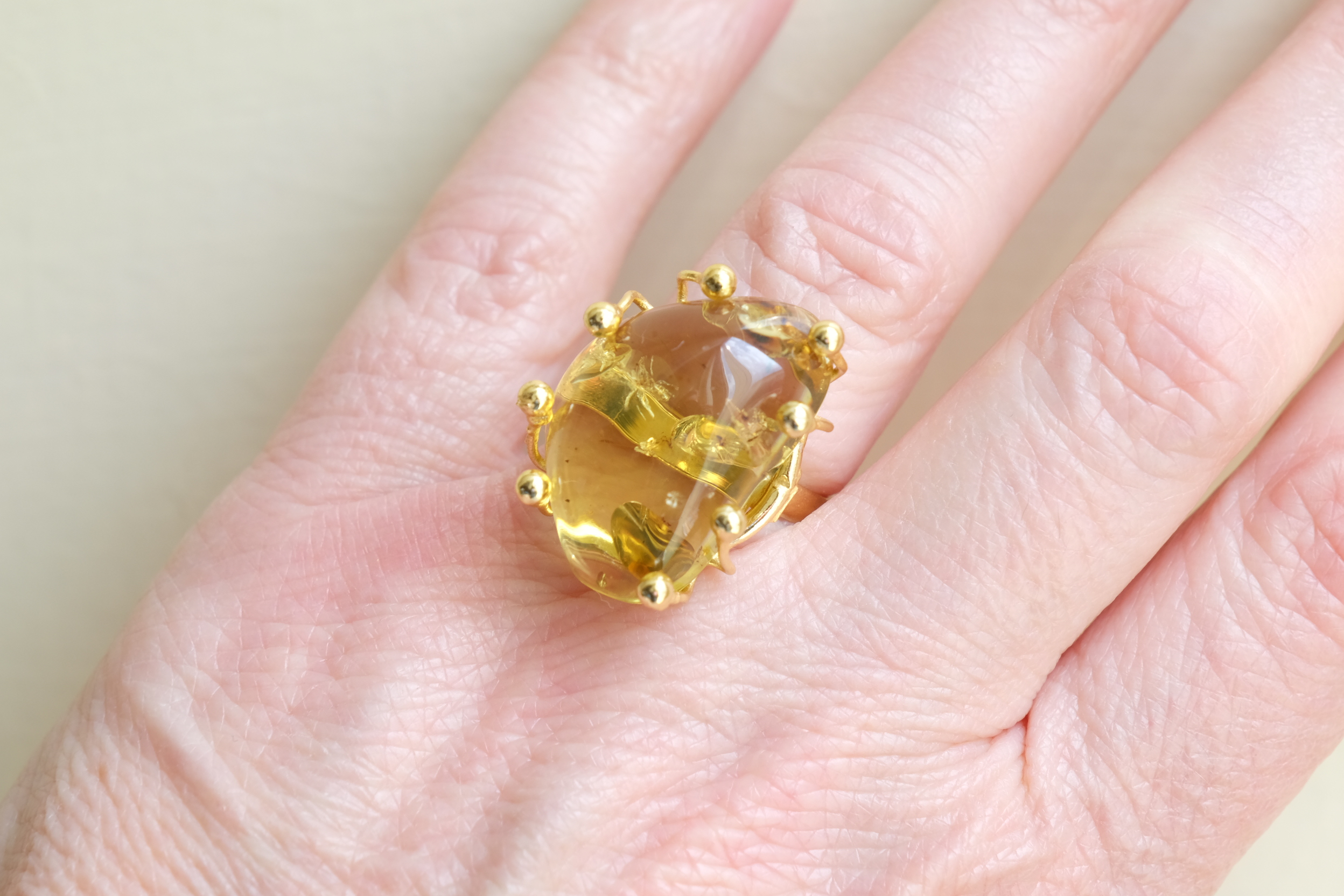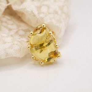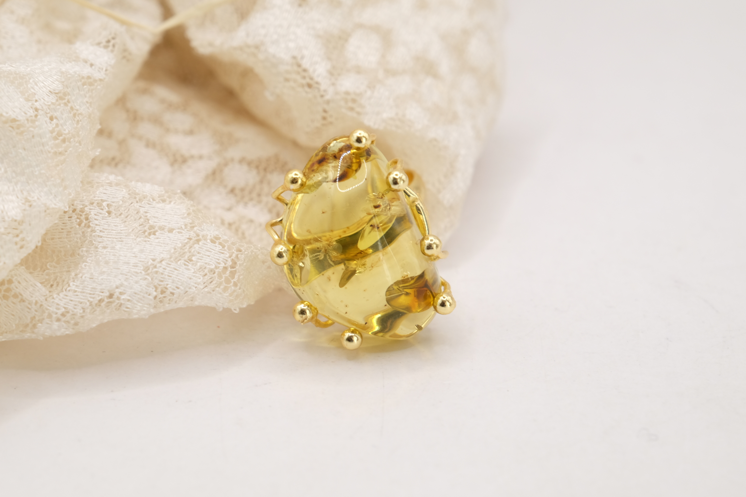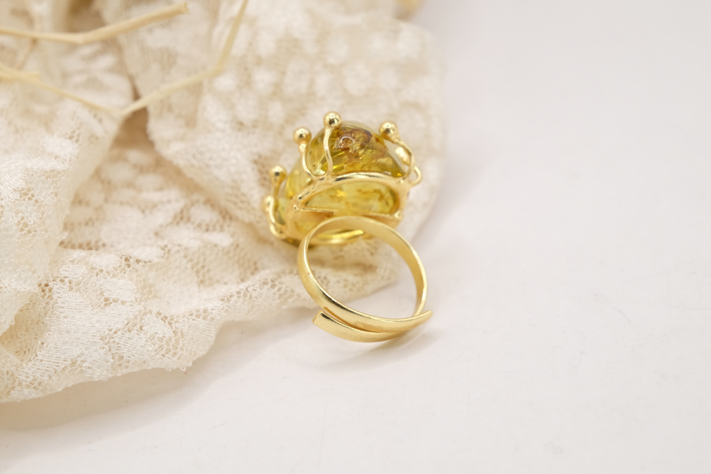 Elegante anello con ambra di Santo Domingo, rara e preziosa, naturale su montatura in ottone placcato oro a 7 strati