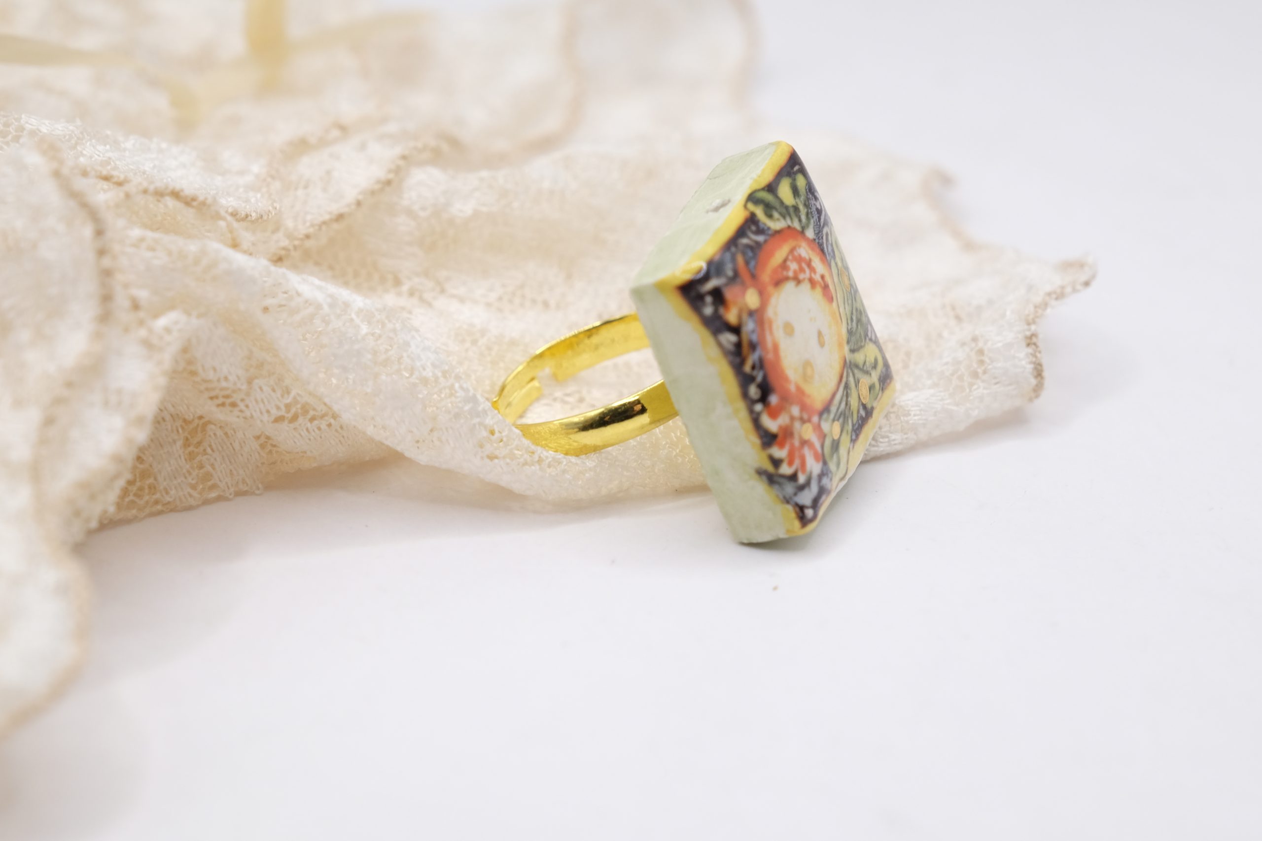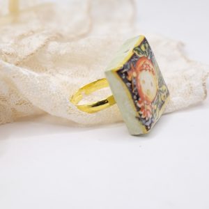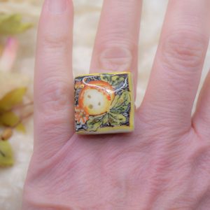 Anello Artigianale con mattonella ceramica di Caltagirone Melograno