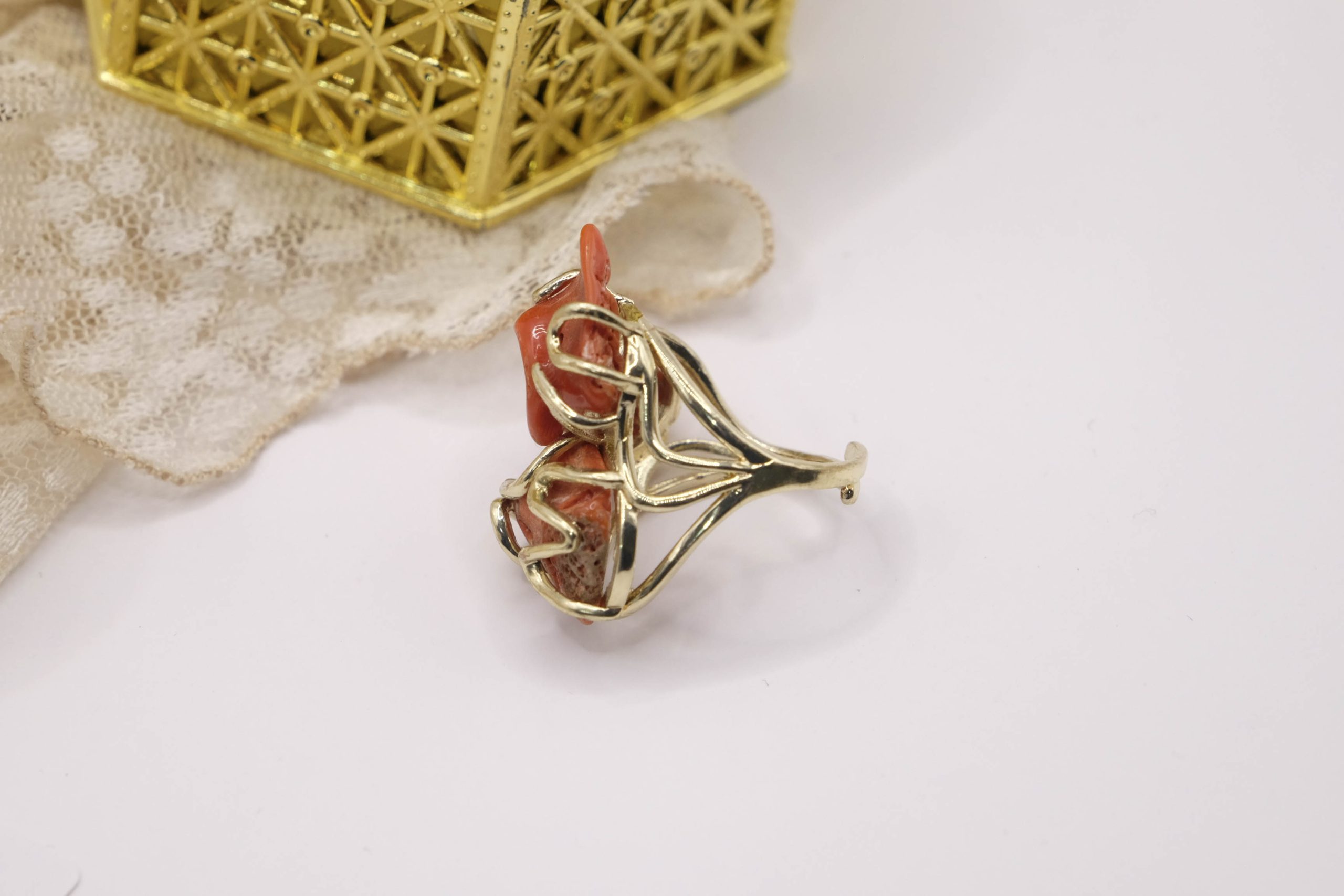 Anello artigianale con corallo grezzo naturale
