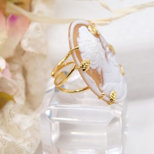 Questo affascinante anello è un’elegante espressione di bellezza e tradizione. Il suo cammeo genuino proveniente da Torre del Greco è una testimonianza dell’abilità artigianale secolare di questa rinomata località italiana. Questo gioiello è una fusione di storia e modernità, un simbolo di classe e raffinatezza che cattura l’attenzione con la sua bellezza unica e la sua eleganza senza tempo.
