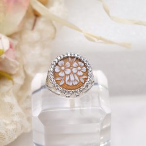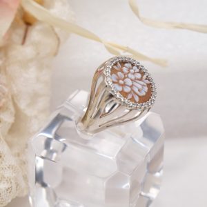 Anello con fiori cammeo di Torre del Greco e zirconi Argento 925 Rodiato
