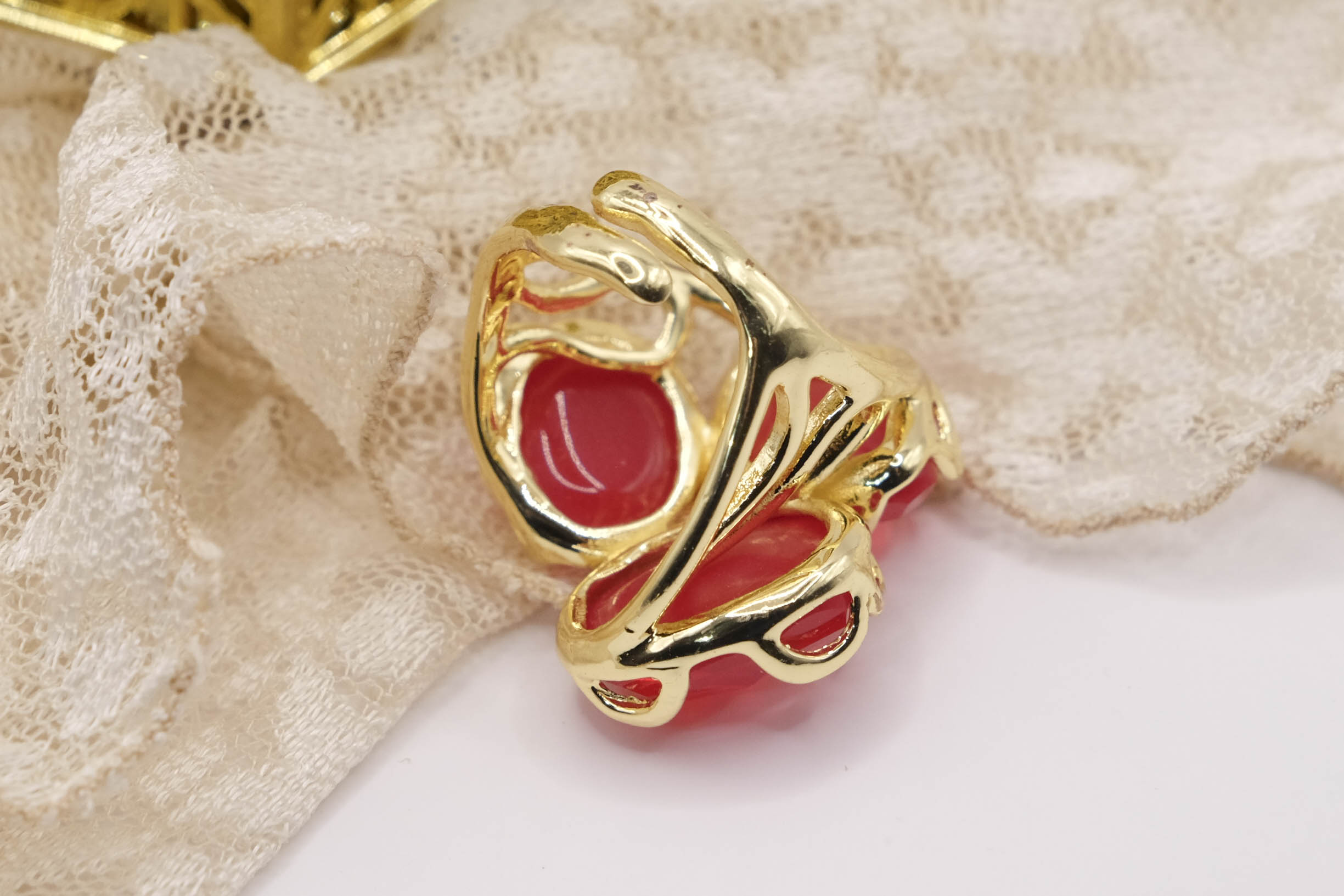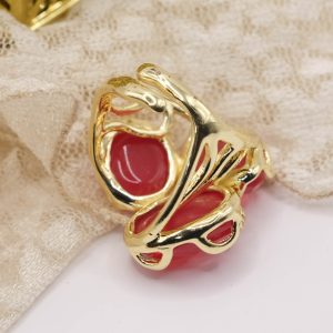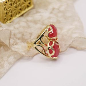 Anello Maxi 3 Pietre Occhio di Gatto Rosso Ottone