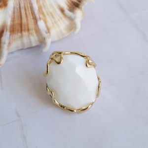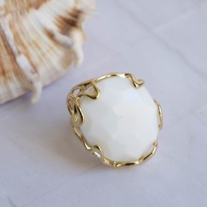 Elegante anello maxi con agata bianca naturale su montatura in ottone