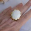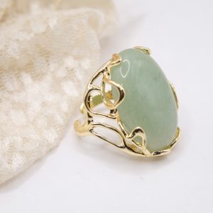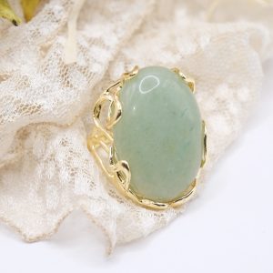 Anello con montatura realizzata in ottone, dai dettagli lavorati e incisioni che aggiungono un tocco di carattere al design. Al centro dell’anello è posizionata una grande pietra di avventurina verde naturale. Questo anello può essere indossato da solo per attirare l’attenzione sulla bellezza delle pietre o abbinato ad altri gioielli per creare un look unico e sofisticato.