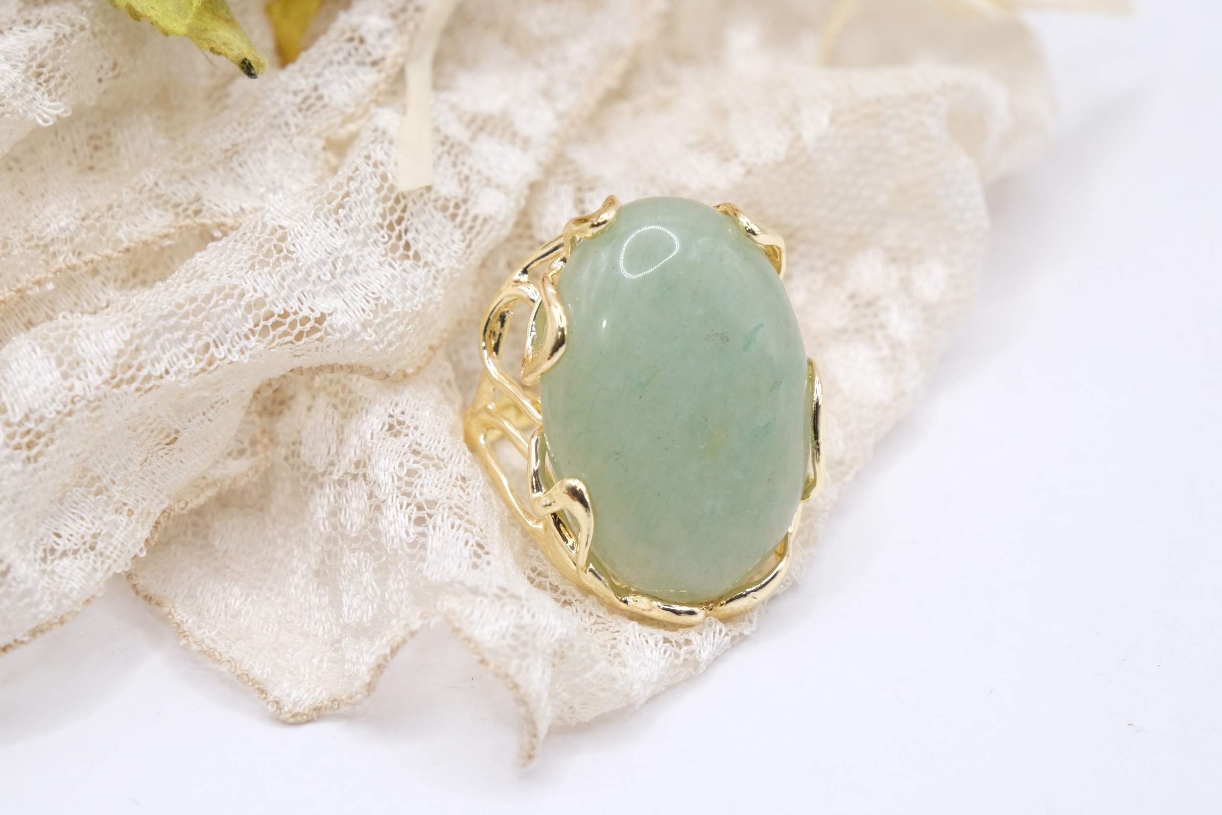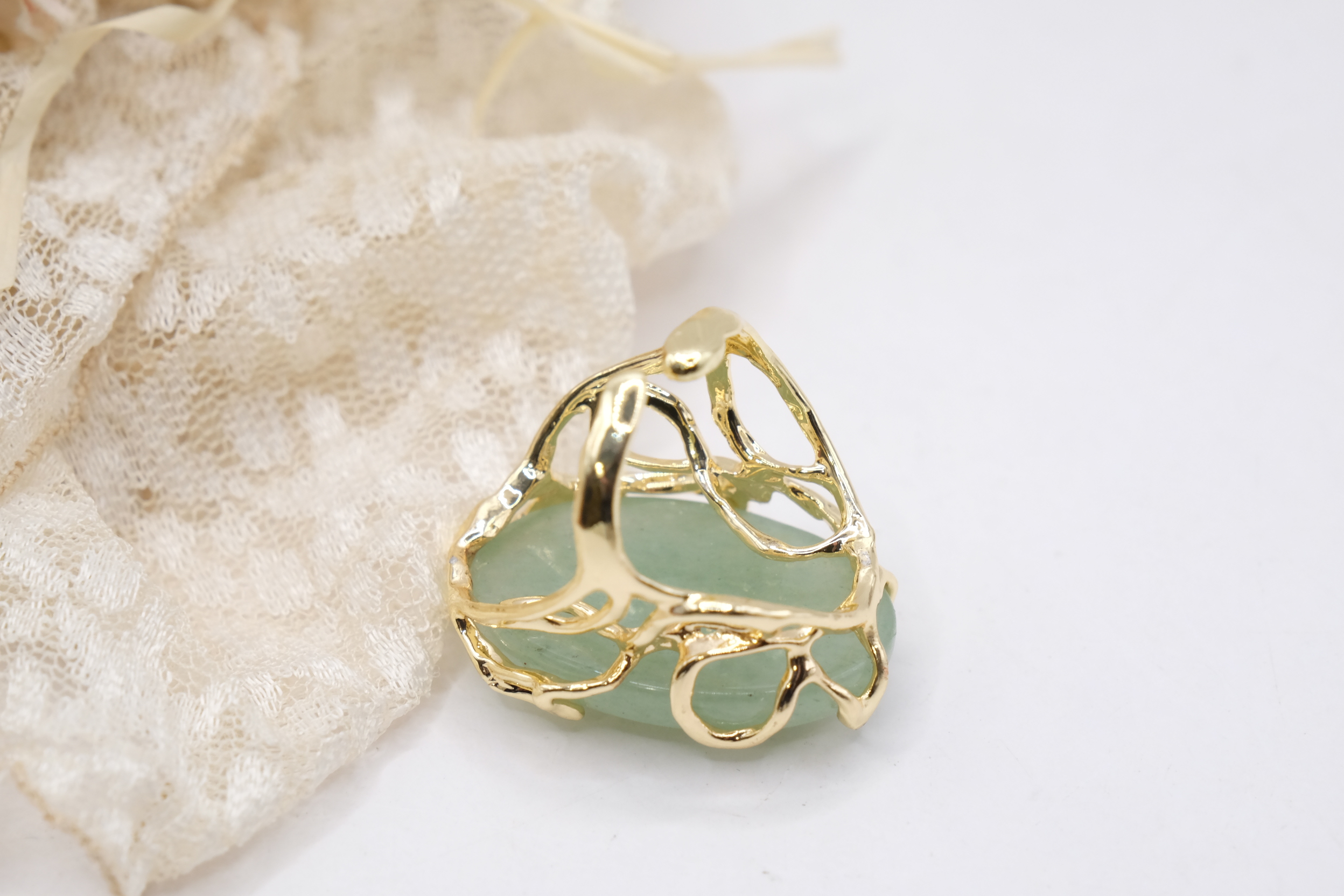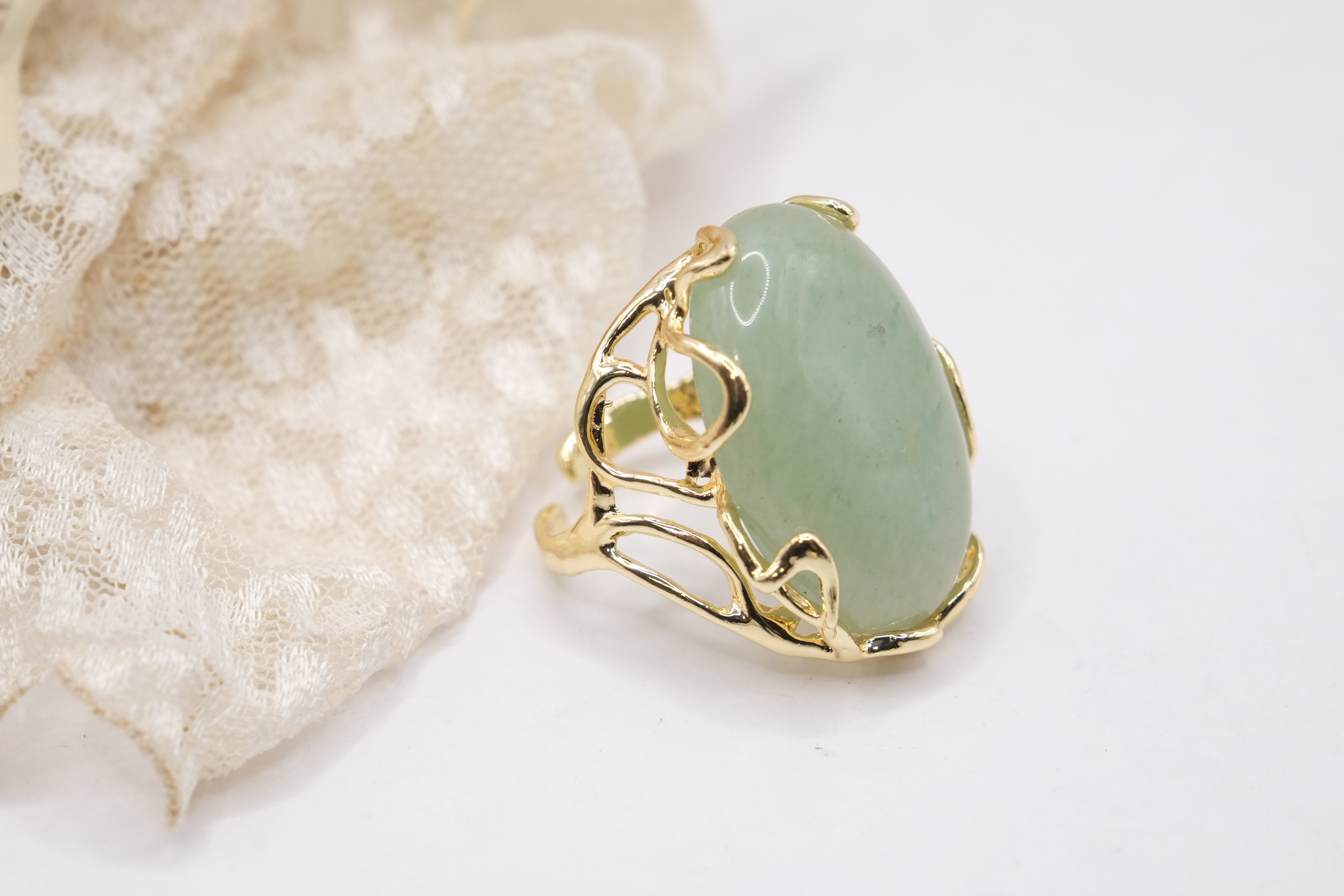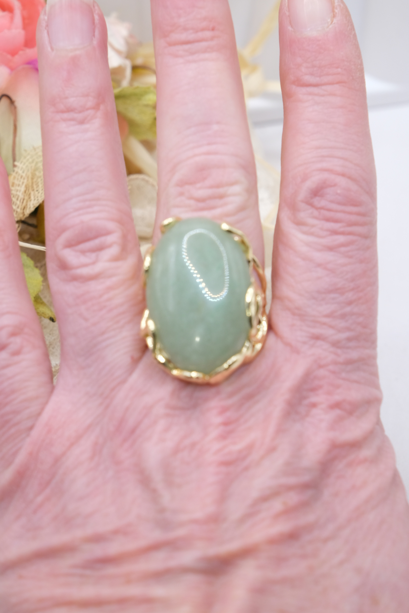 Elegante anello maxi con avventurina verde naturale su montatura in ottone
