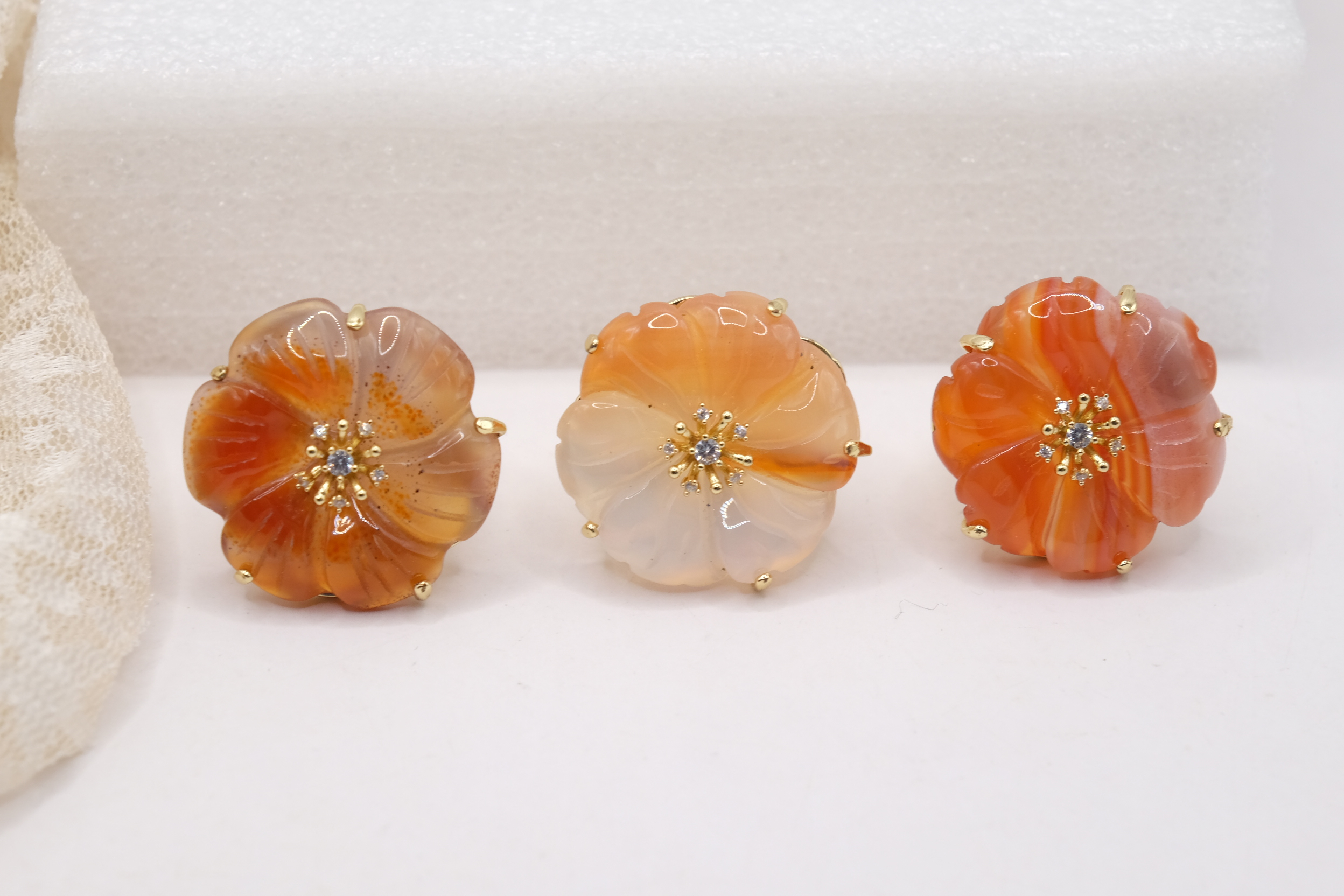 Anello Maxi Fiore Corniola 3 Varianti Regolabile