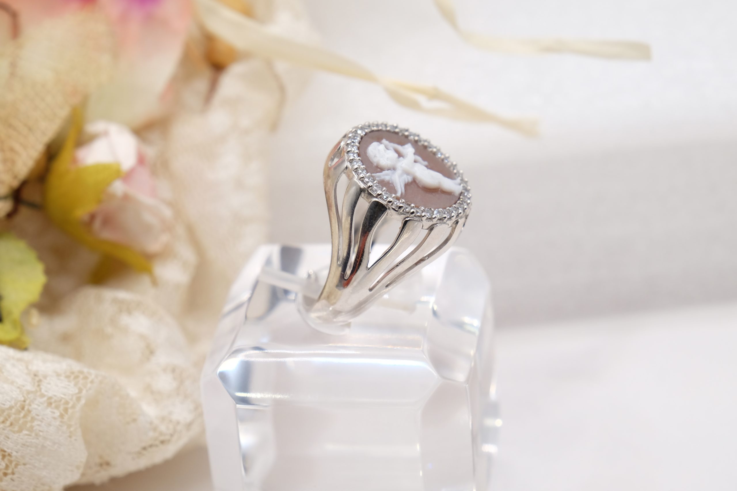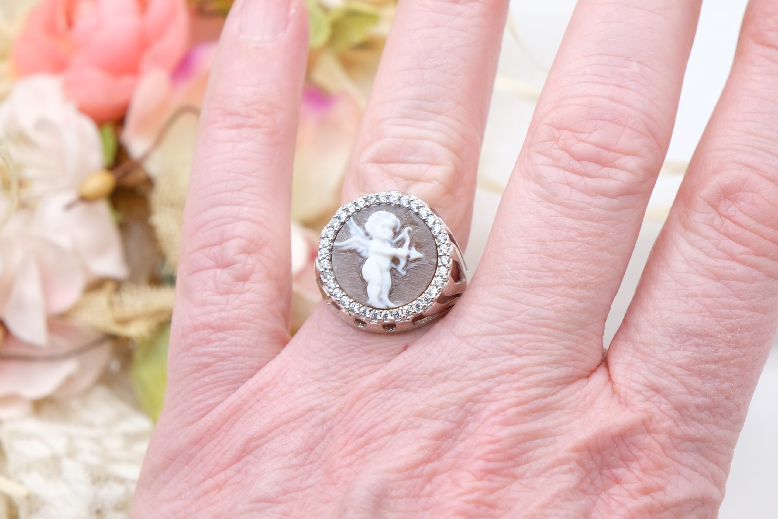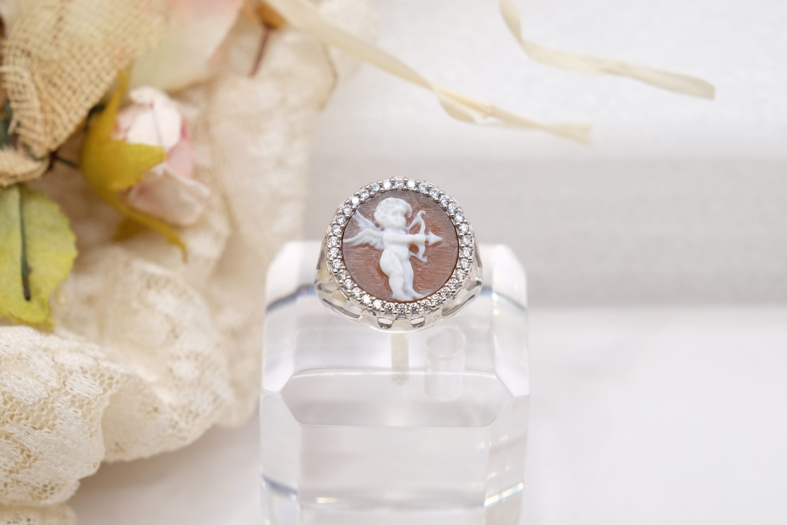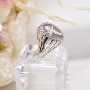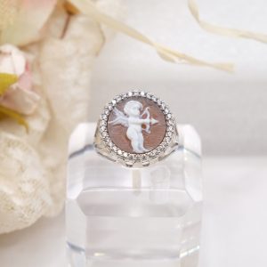 Anello Putto Cammeo di Torre del Greco e Zirconi Argento 925 Rodiato