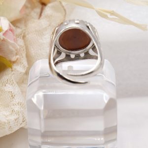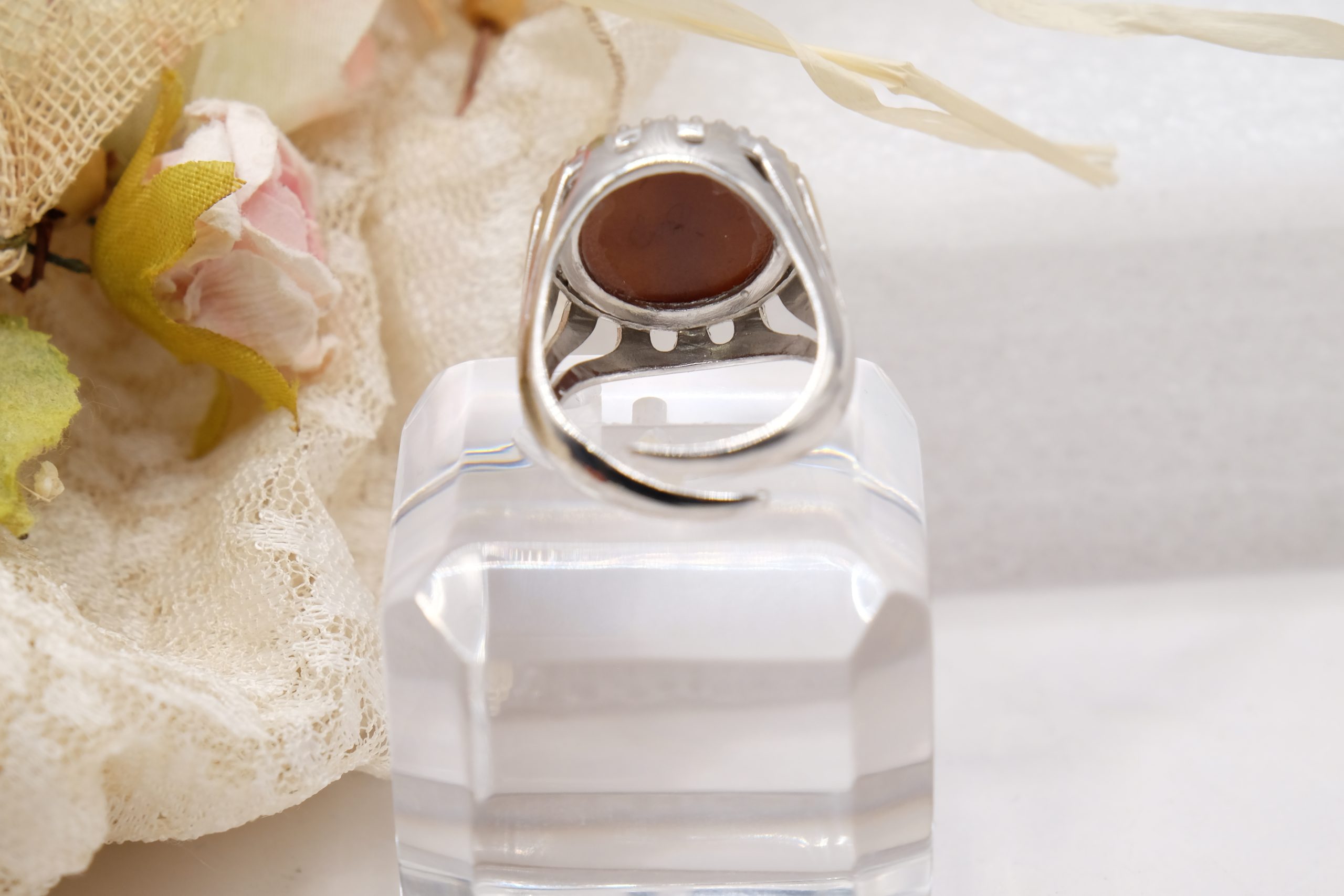Anello in argento 925 placcato rodio, con vero cammeo in conchiglia sardonica, realizzato a mano dai maestri artigiani di Torre del Greco e illuminato da una cornice di brillantissimi zirconi bianchi..