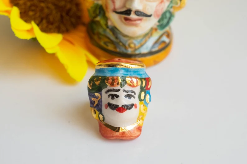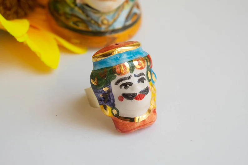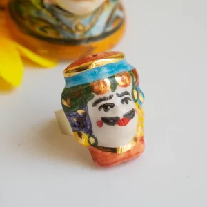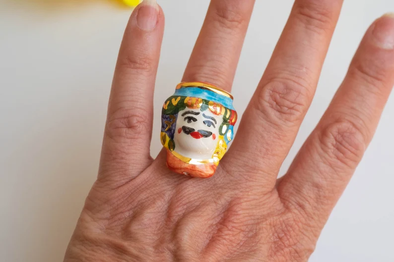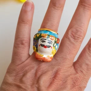 Anello testa di moro uomo in ceramica di Caltagirone R