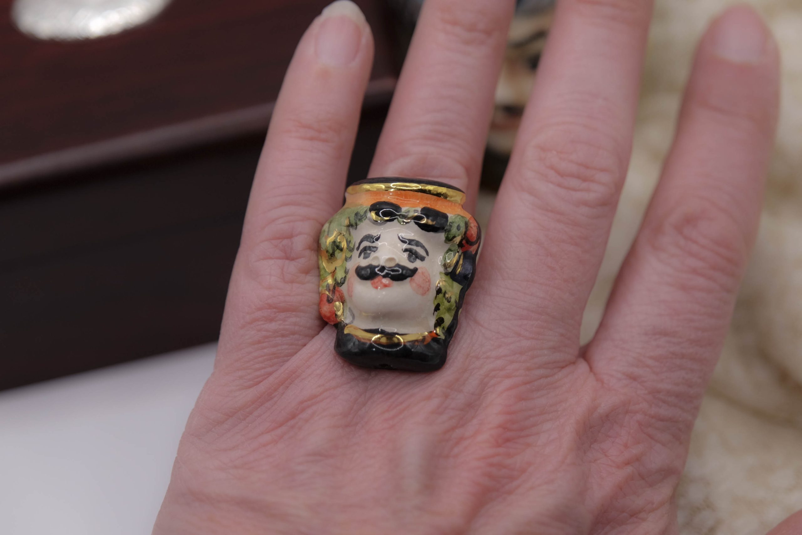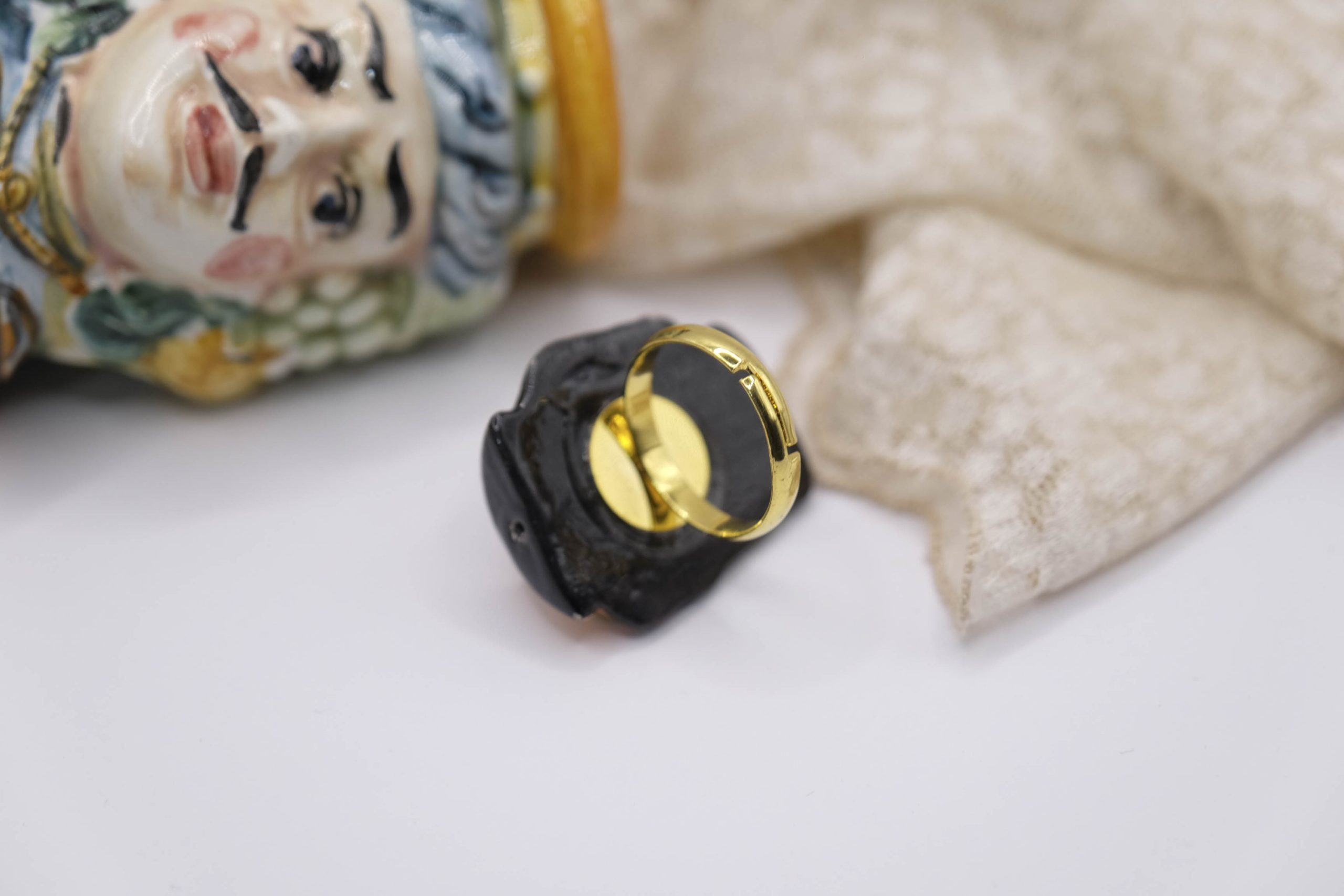 Anello testa di moro uomo in ceramica di Caltagirone N