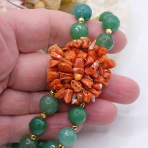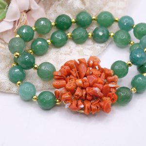 Bracciale Elasticizzato 2 fili Giada Verde Corallo Naturale Tessito