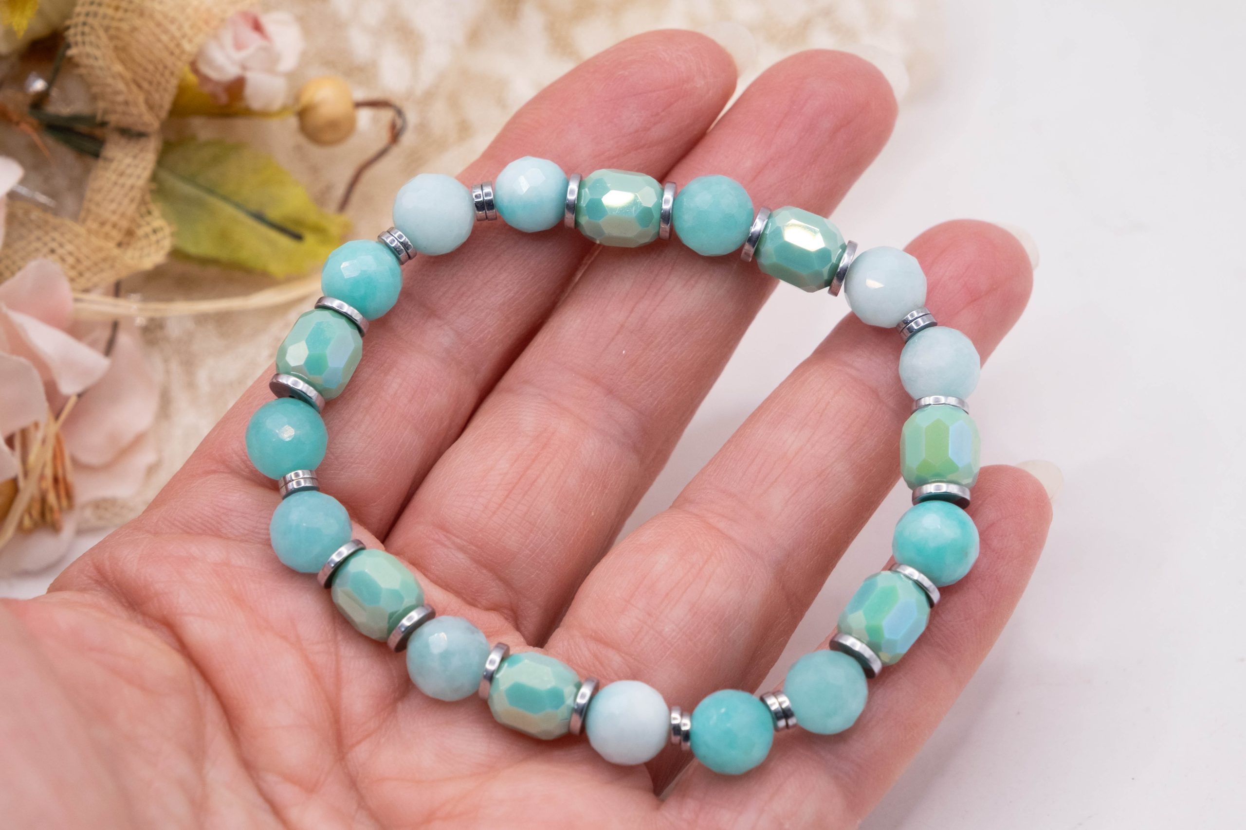 Bracciale Elasticizzato con pietre naturali e cristalli luminosi