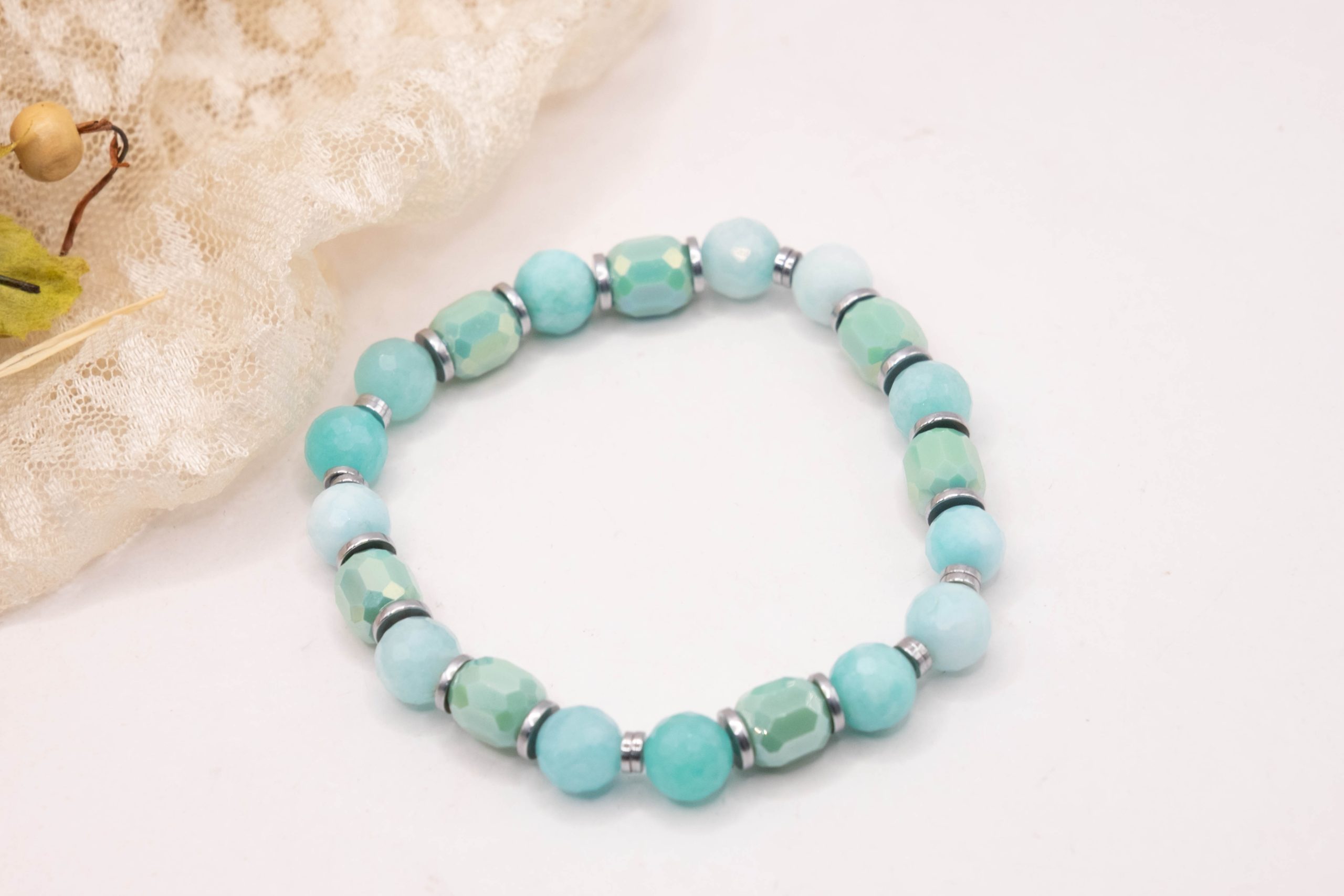 Le pietre di giada naturale si fondono con cristalli scintillanti, creando un equilibrio perfetto tra energia e raffinatezza.