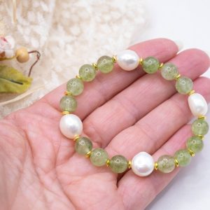 Var 3 Olivina e perle naturali per un polso max 17/19 cm