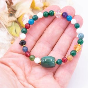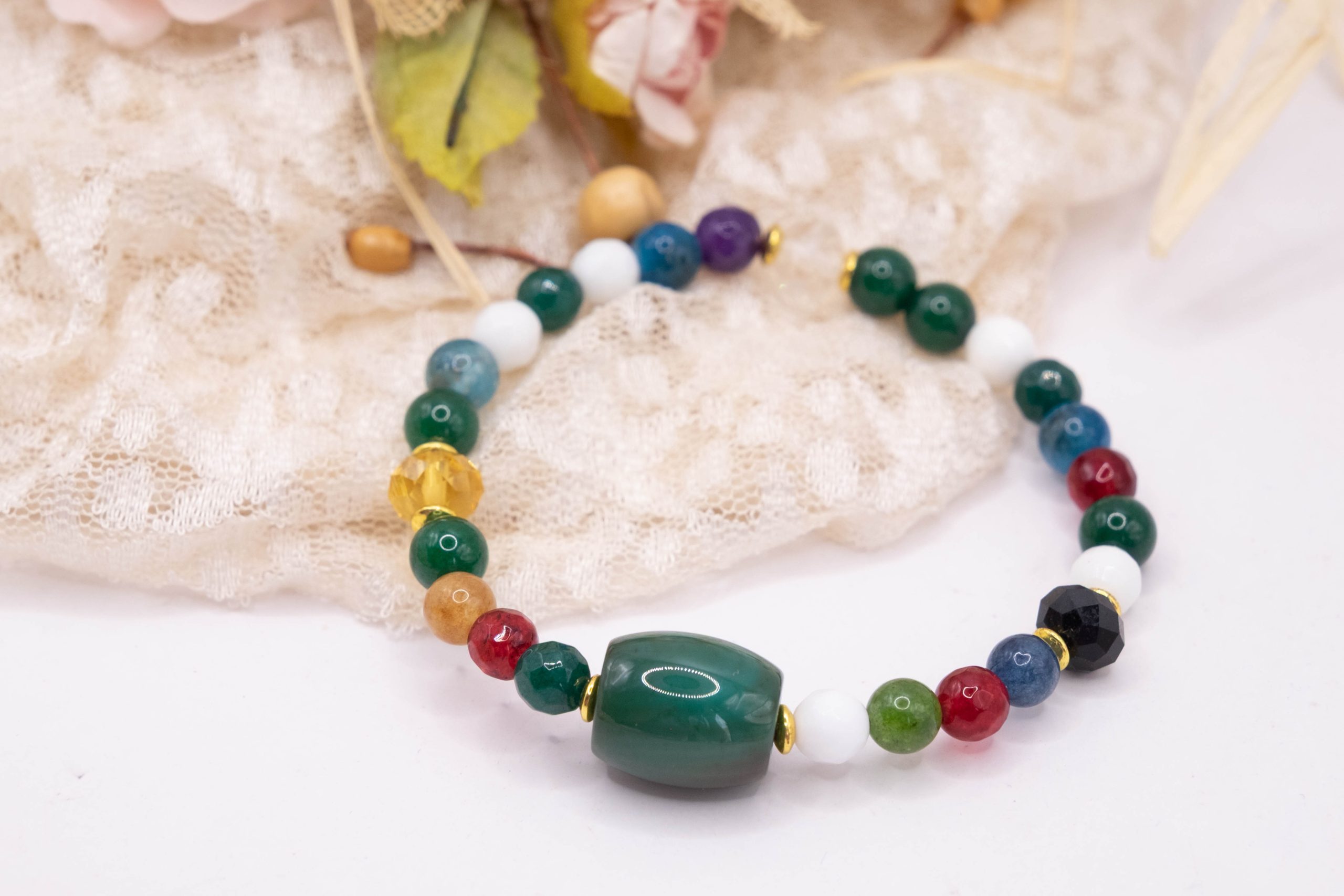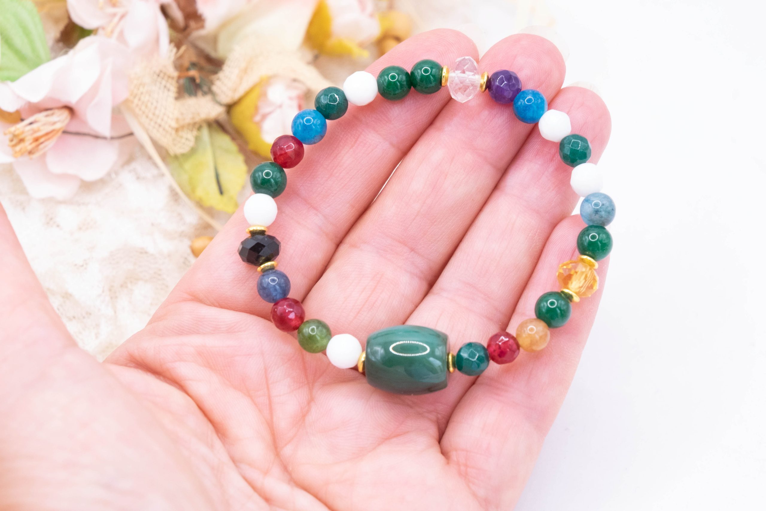 Bracciale Elasticizzato con pietre naturali: giada verde, borgogna, agata bianca, onice nera, apatite ecc
