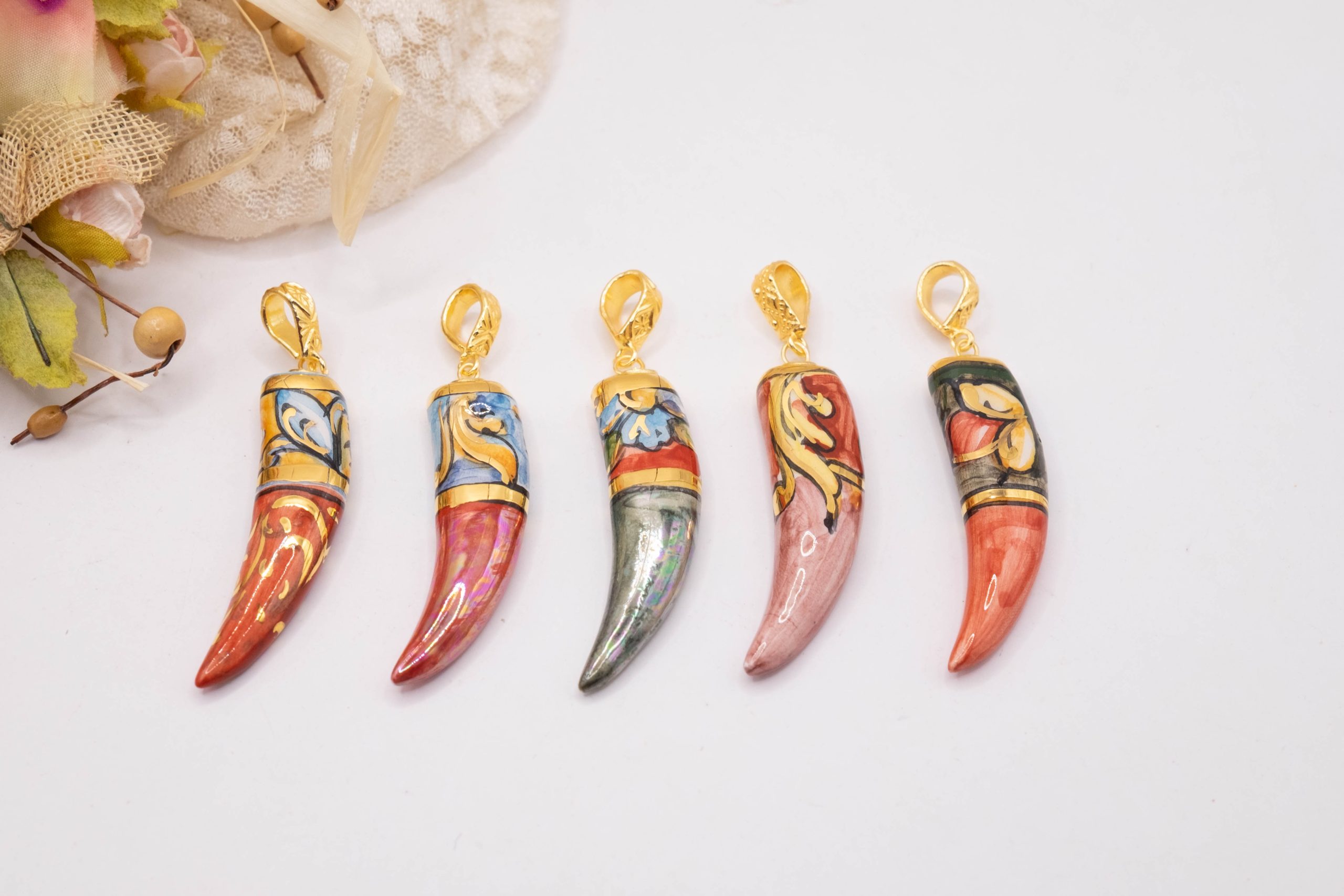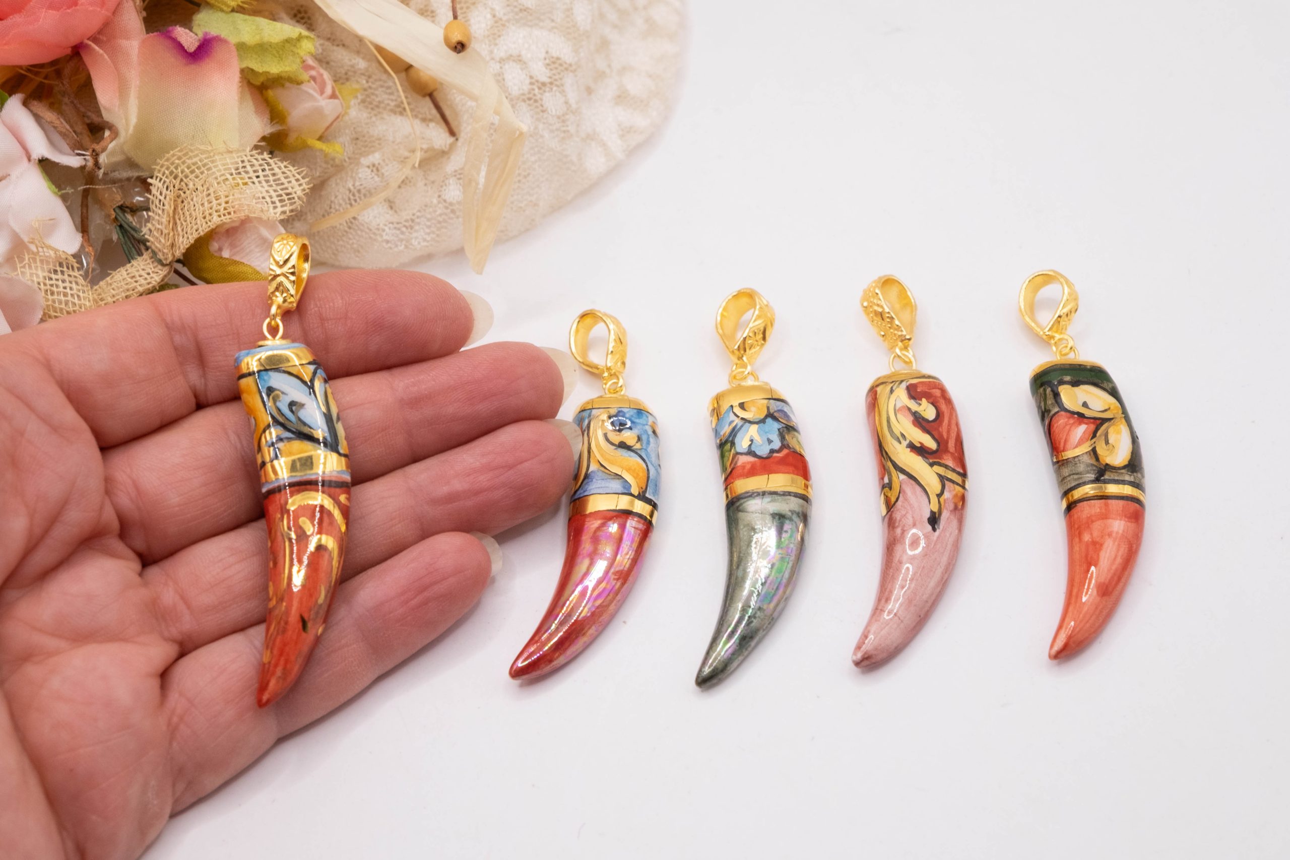Ciondolo Pendente Corno Portafortuna Ceramica di Caltagirone F