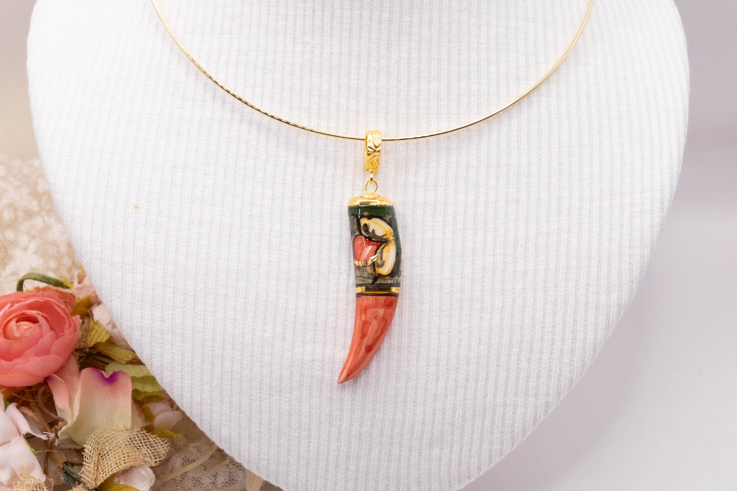Con i suoi 7,2 cm di eleganza e significato, il corno beneaugurante può essere abbinato facilmente: indossalo su una catenina, su una collana, oppure valorizzalo con il nostro girocollo rigido per un effetto ancora più distintivo.