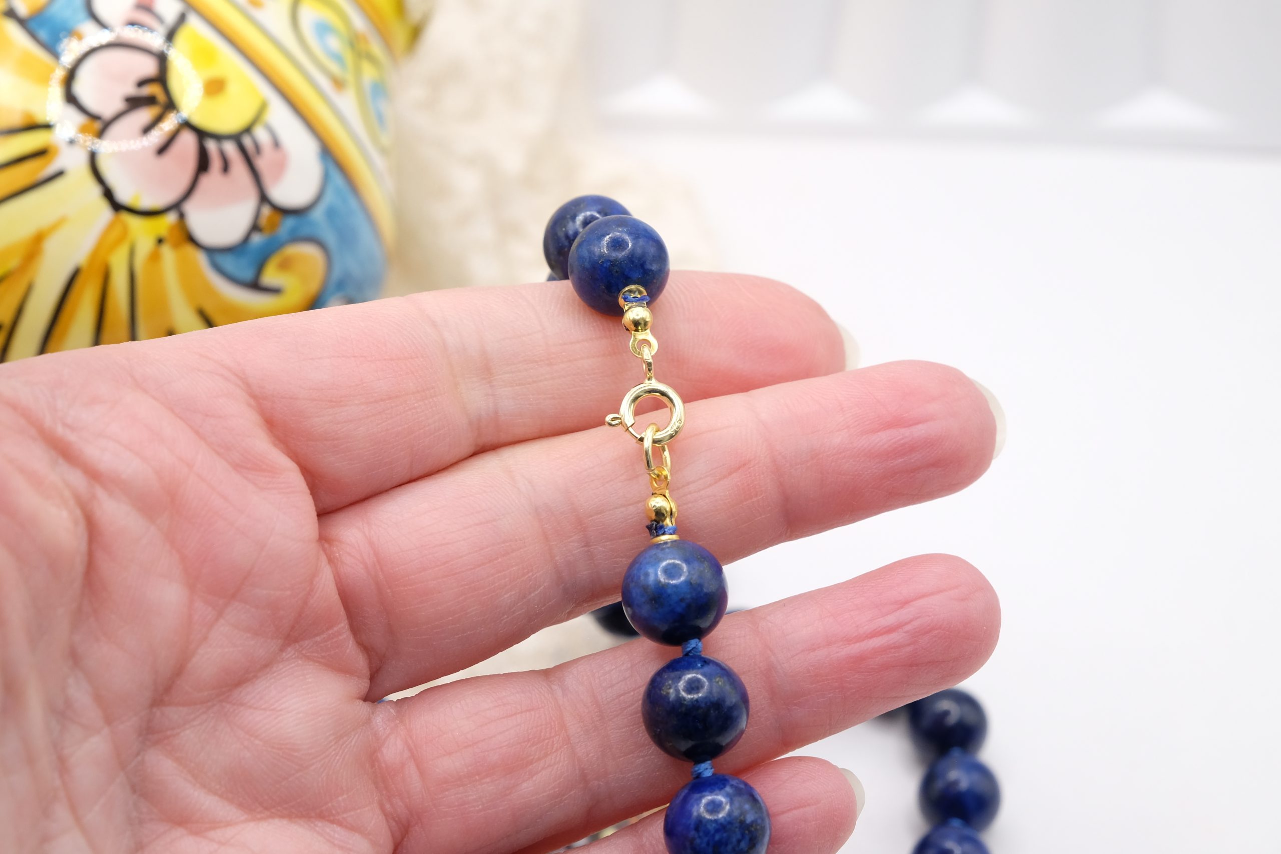 La collana è lunga 46 cm ed è tutta annodata con filo di seta