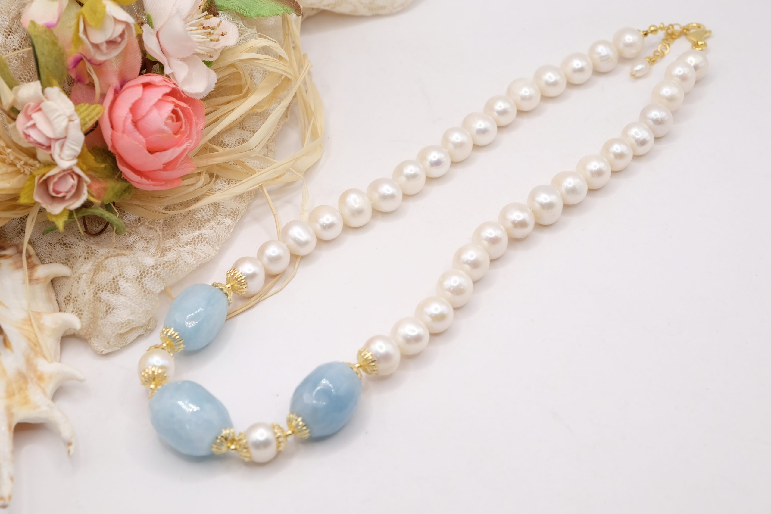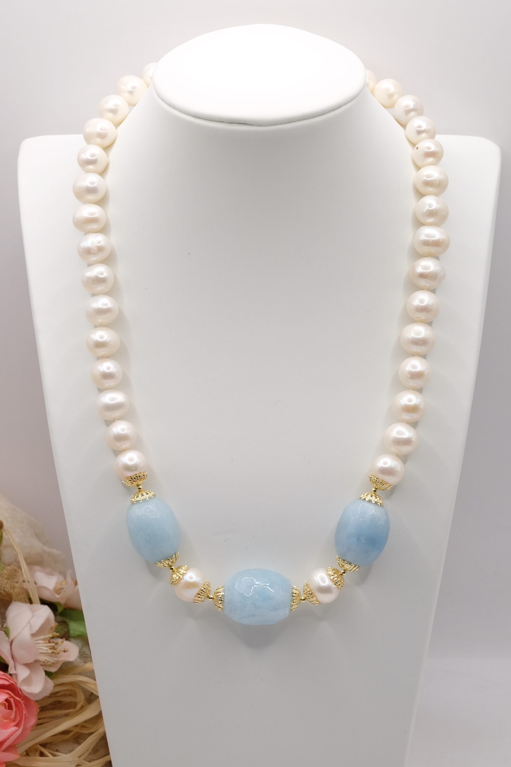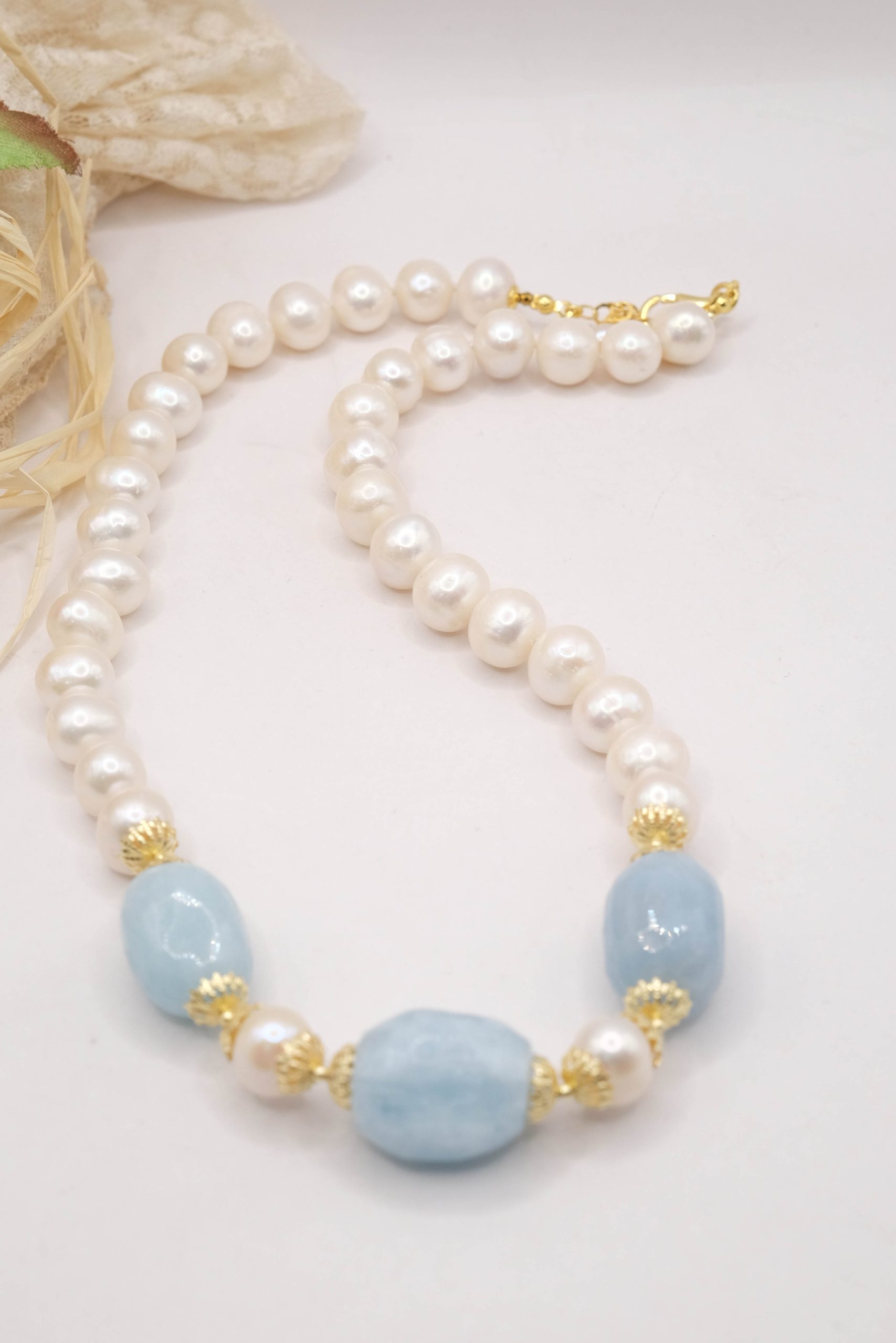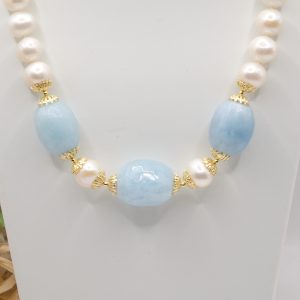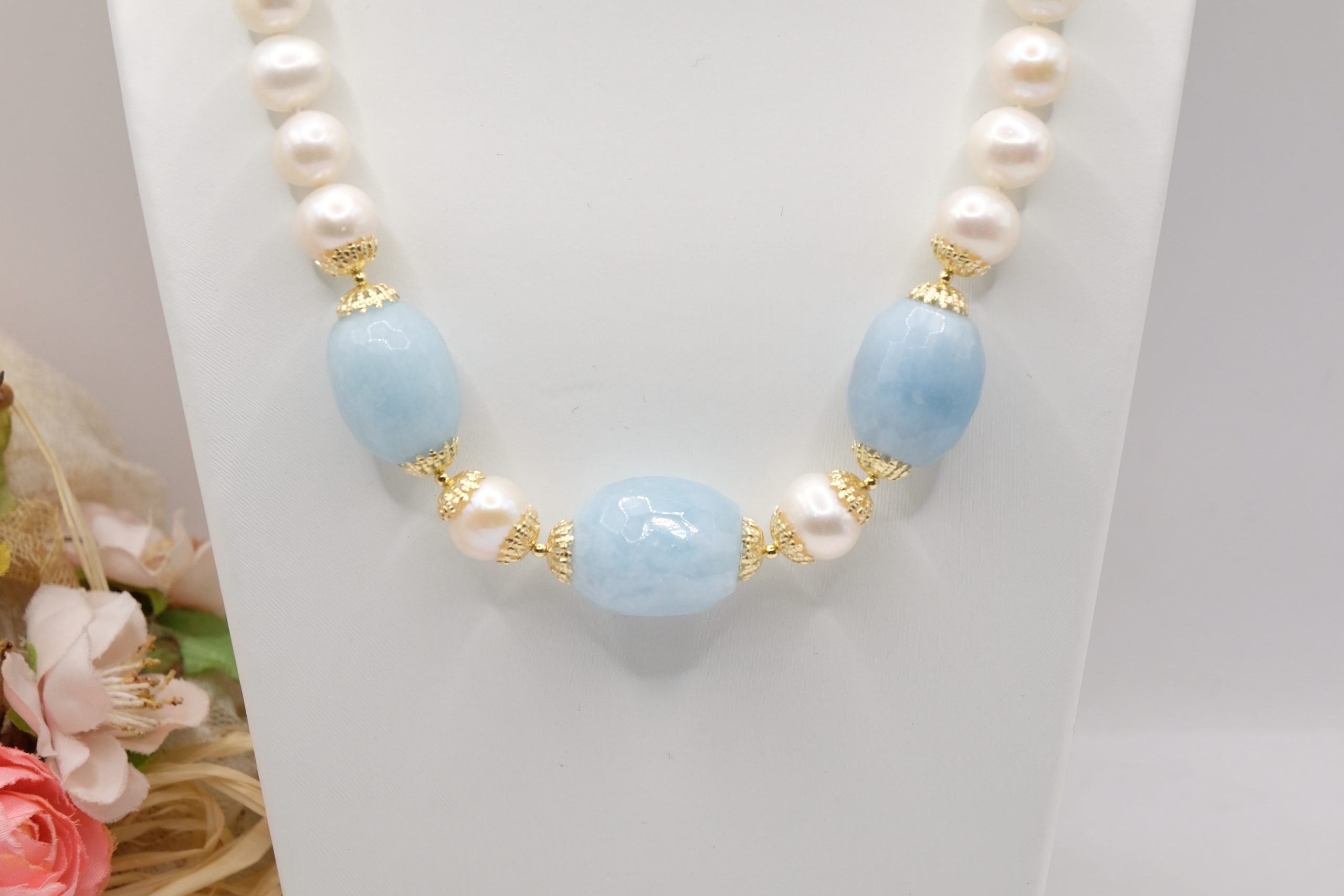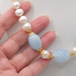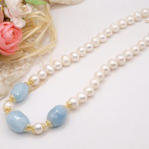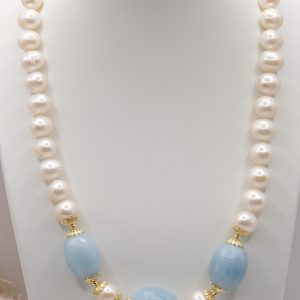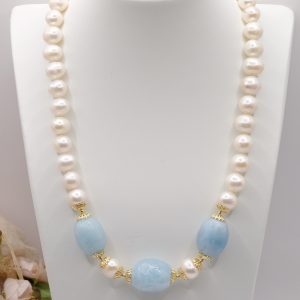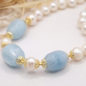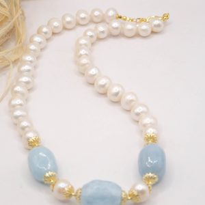Collana Acquamarina Perle Naturali Argento Placcato Oro