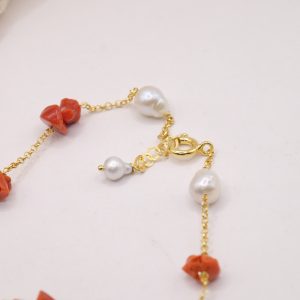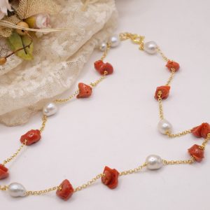 Collana Artigianale Argento 925 Dorato Corallo Perle
