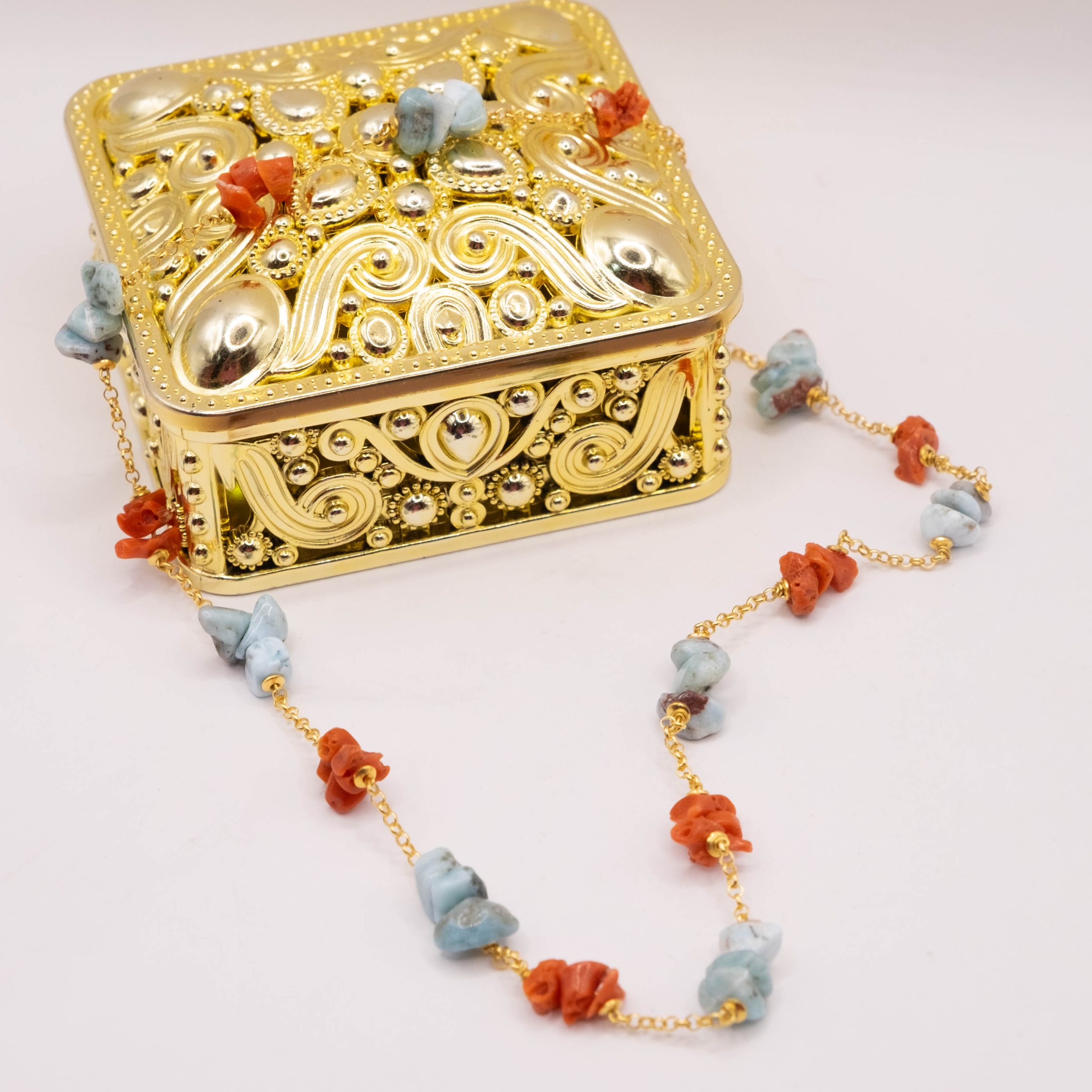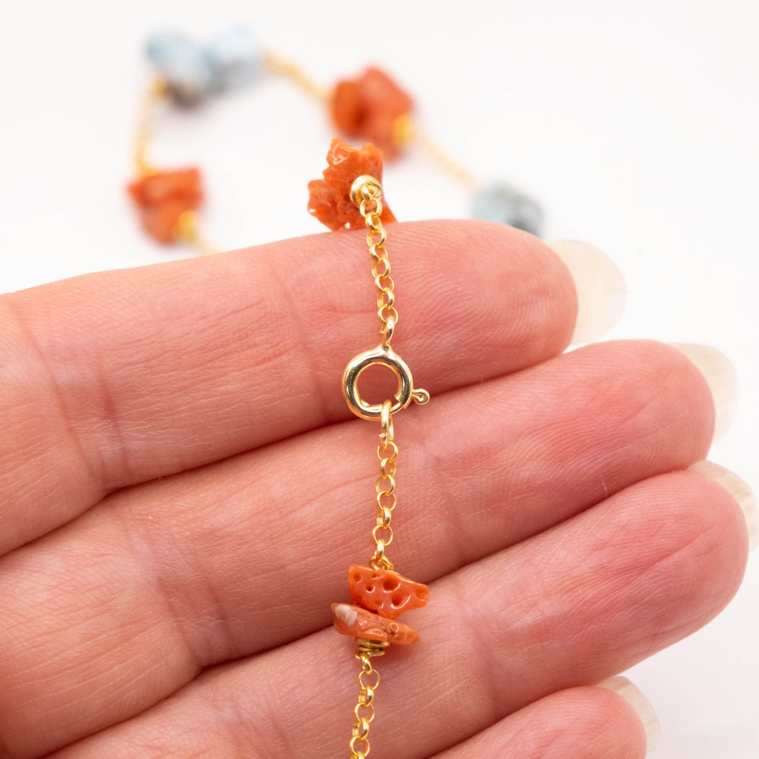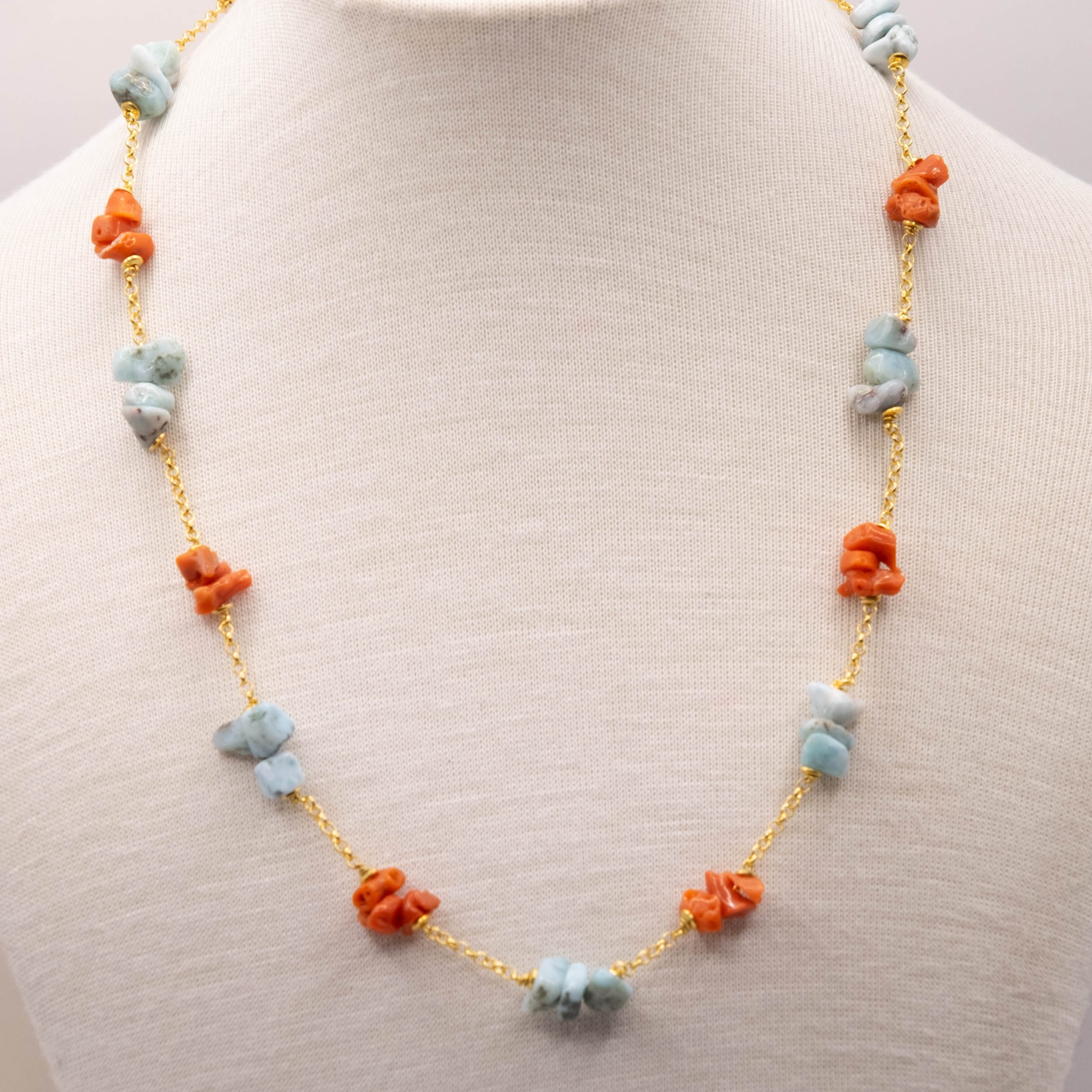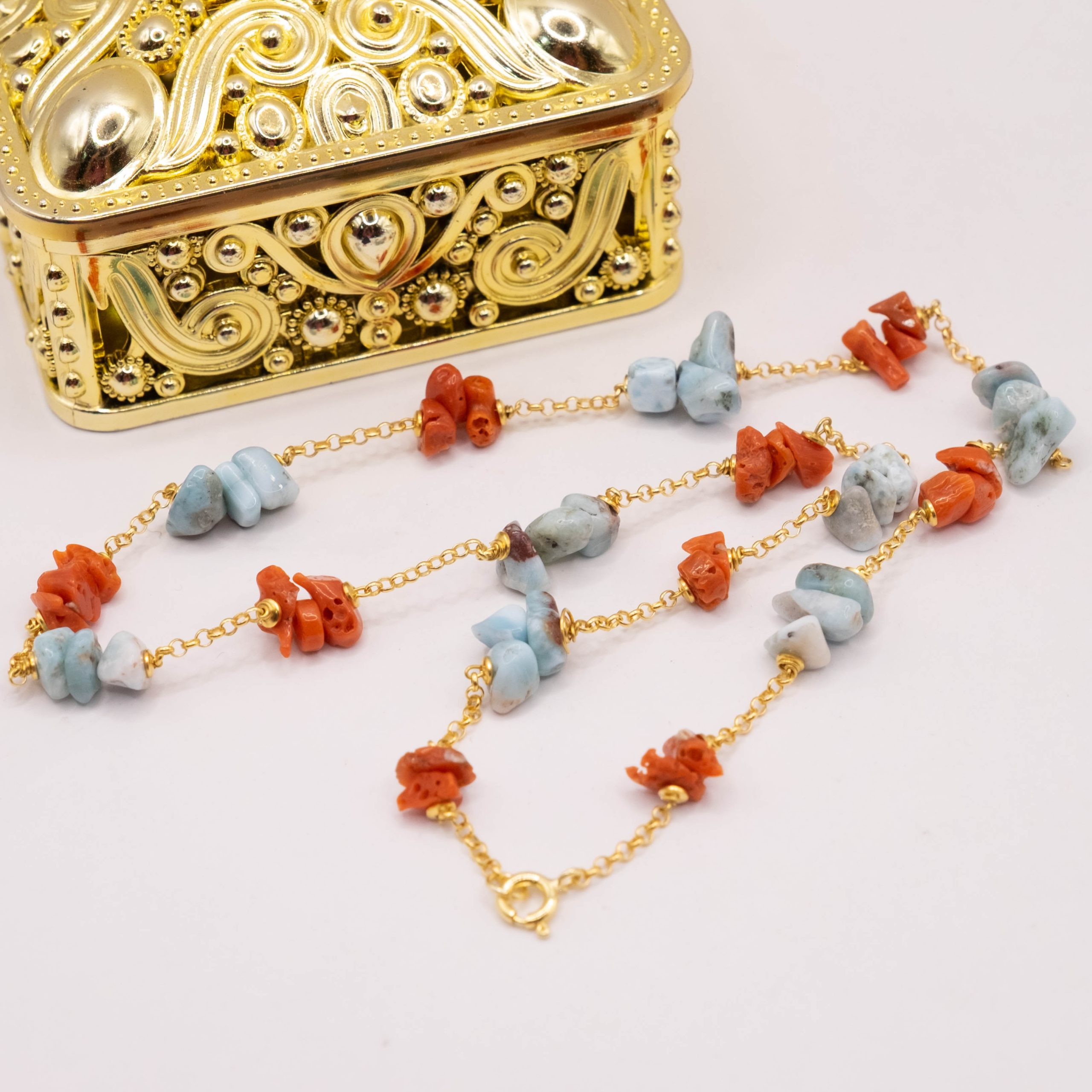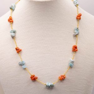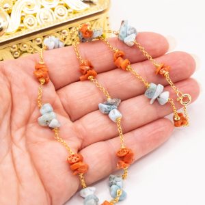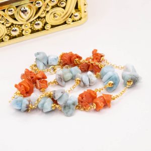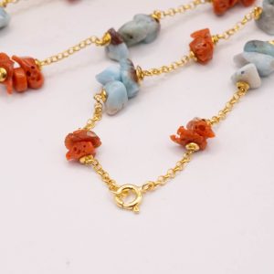Collana Artigianale Argento 925 Dorato Corallo Larimar