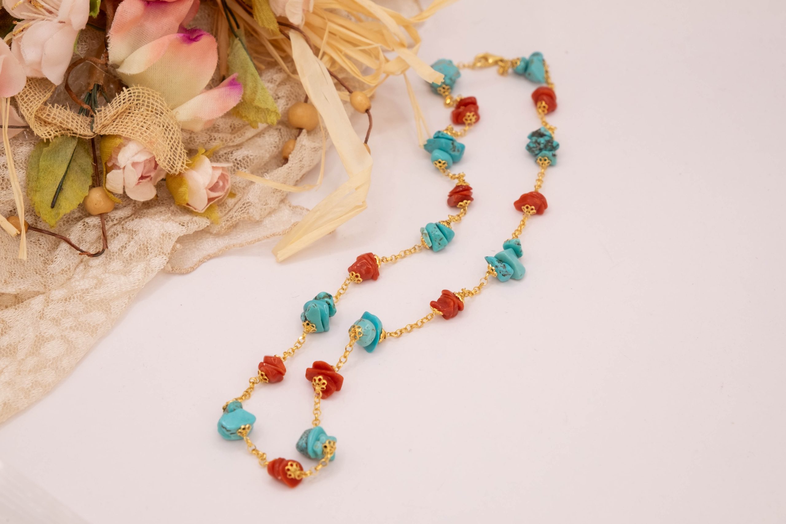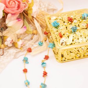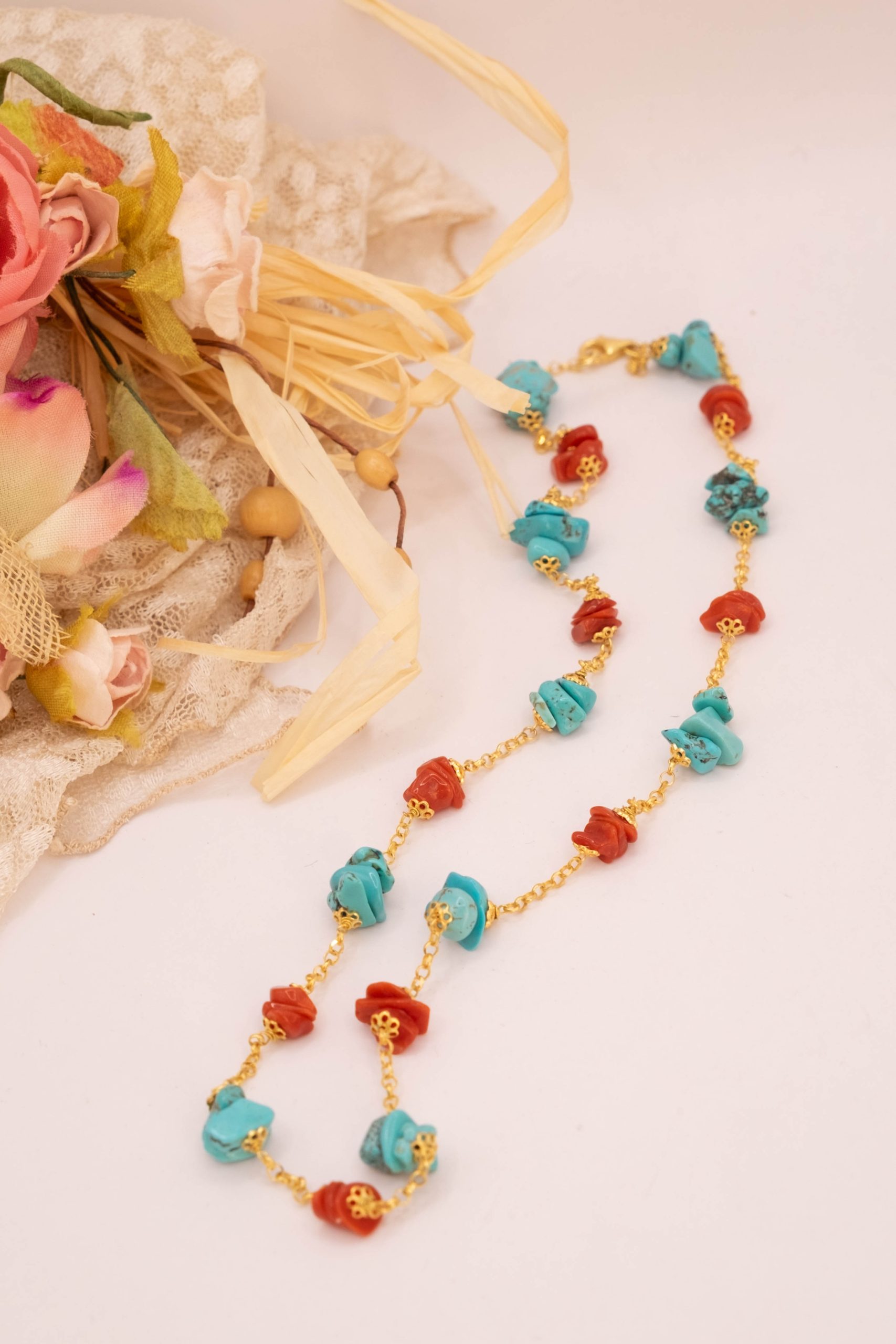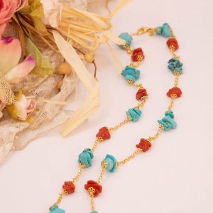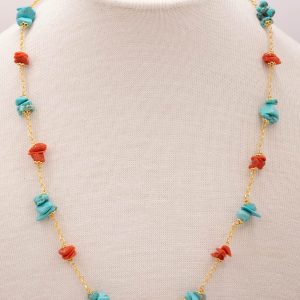 Collana Artigianale Argento 925 Dorato Corallo Turchese