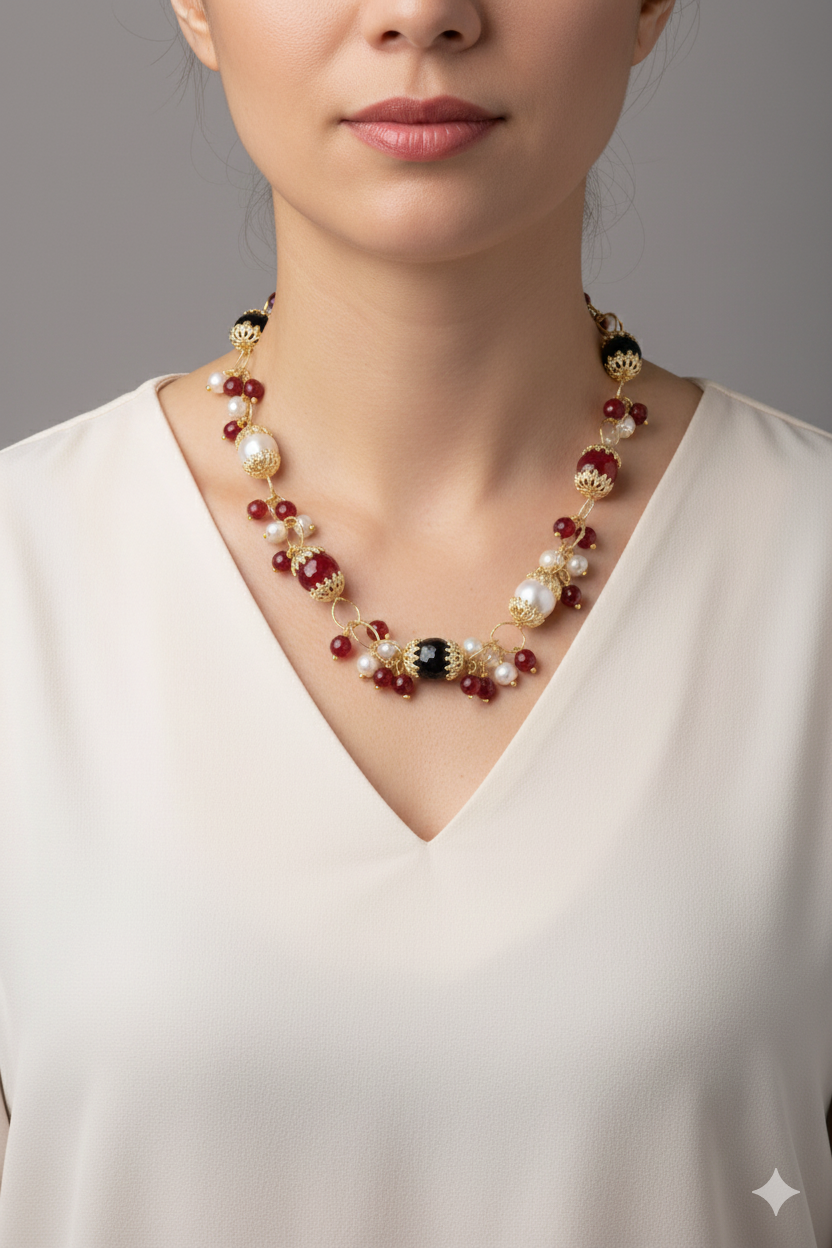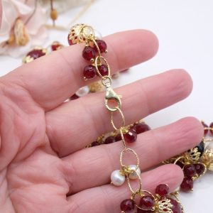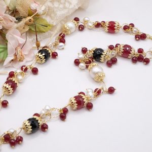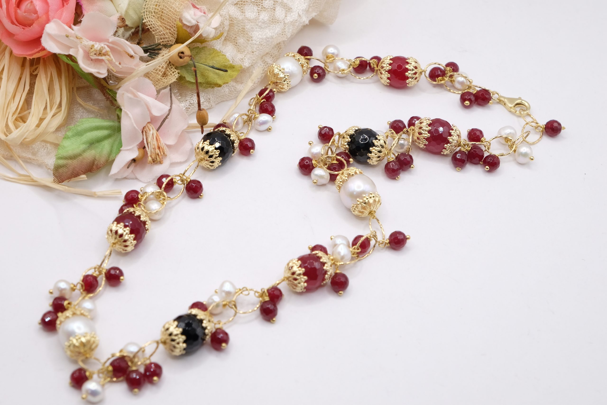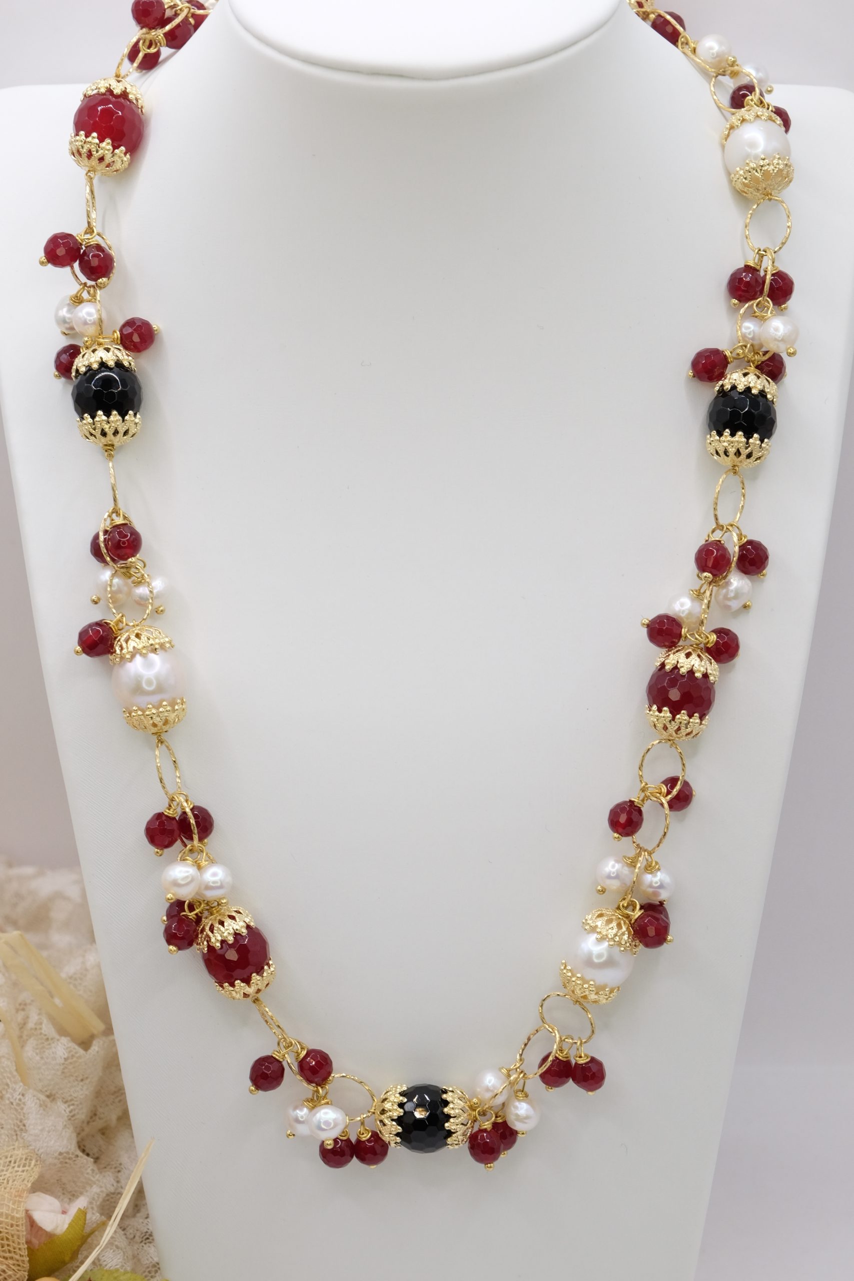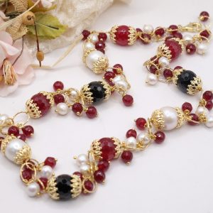 Collana Artigianale Giada Borgogna Onice Perle Argento 925