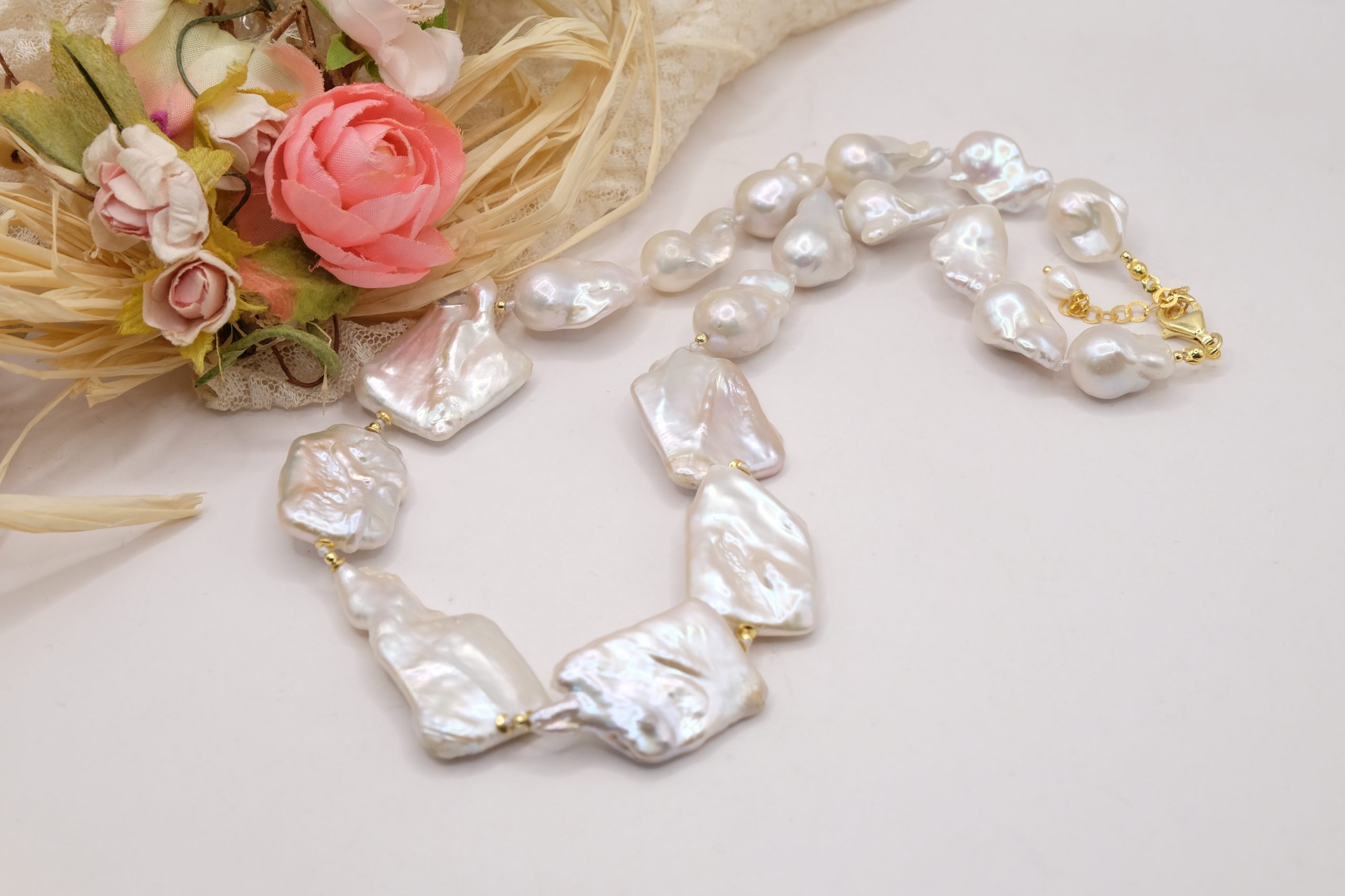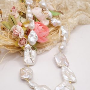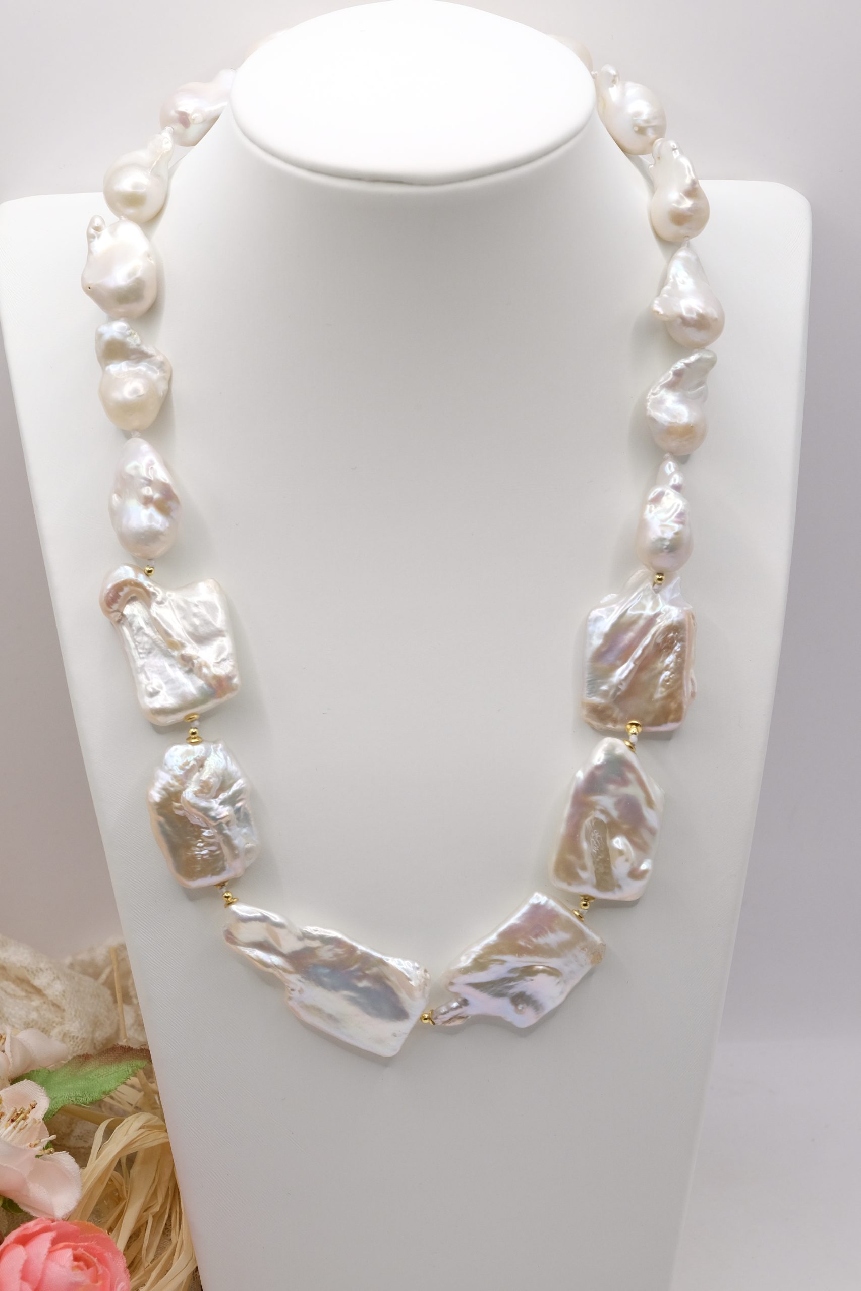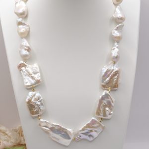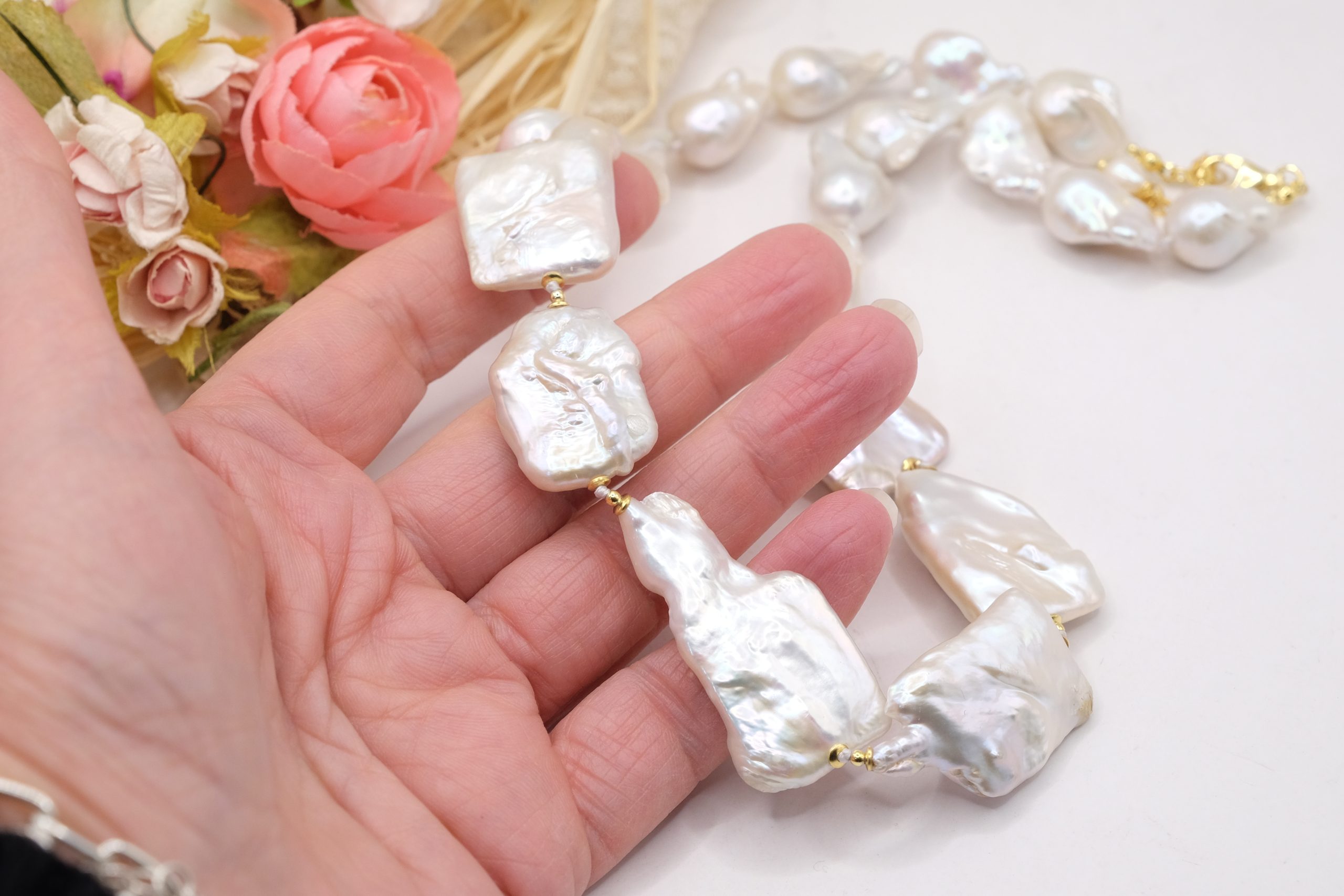 Collana bellissima con perle quadrate di grandi dimensioni, perle a goccia e ematite gold