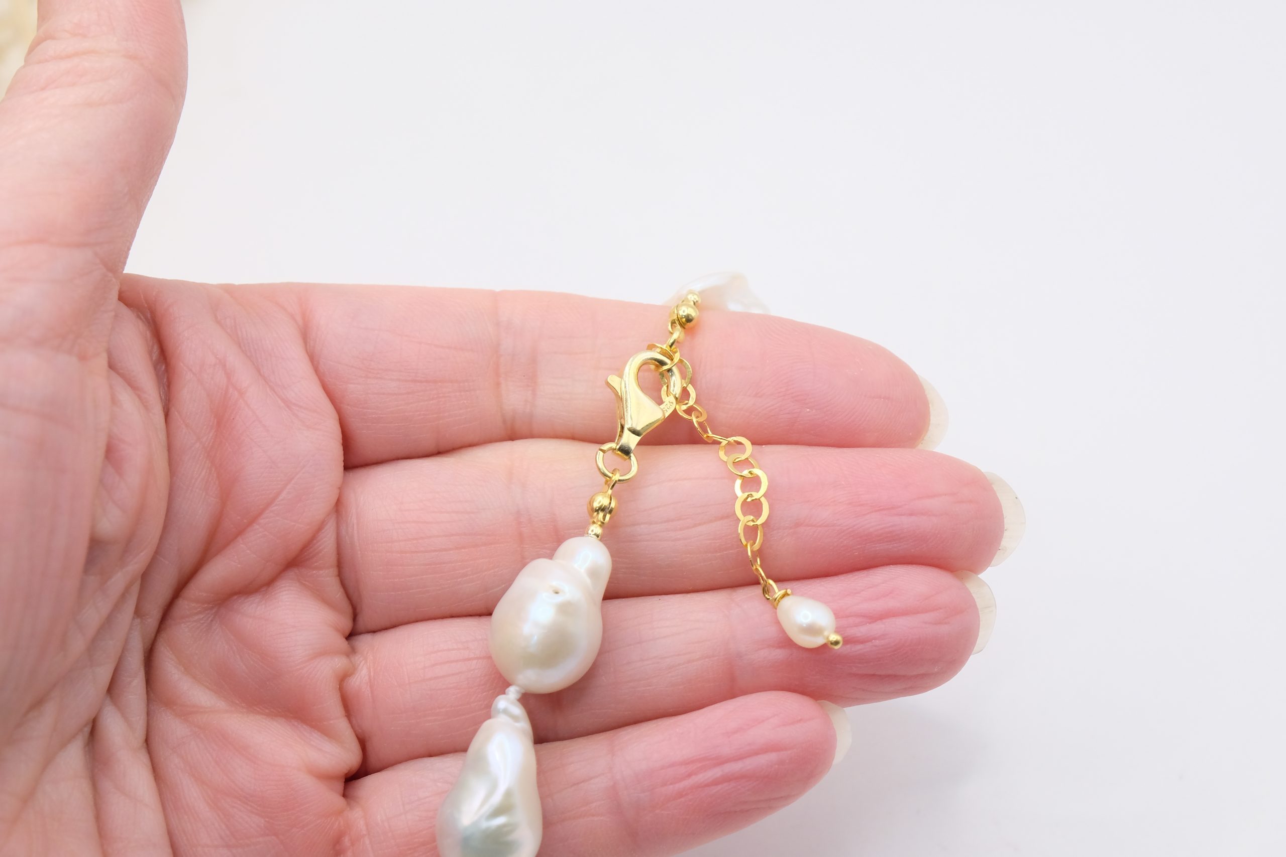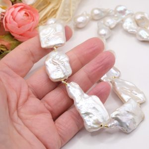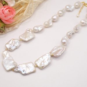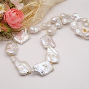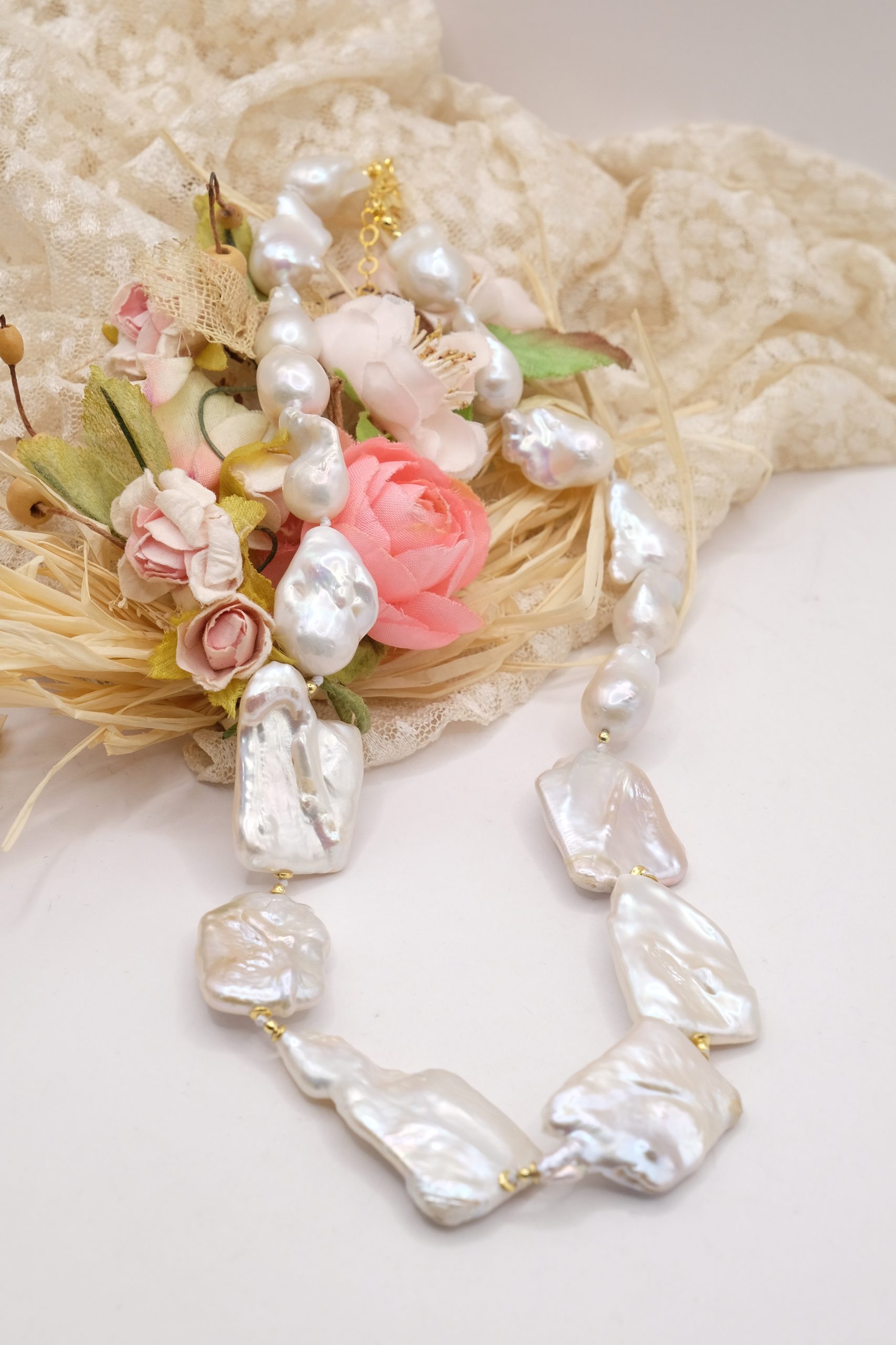 Collana bellissima con perle quadrate di grandi dimensioni, perle a goccia e ematite gold
