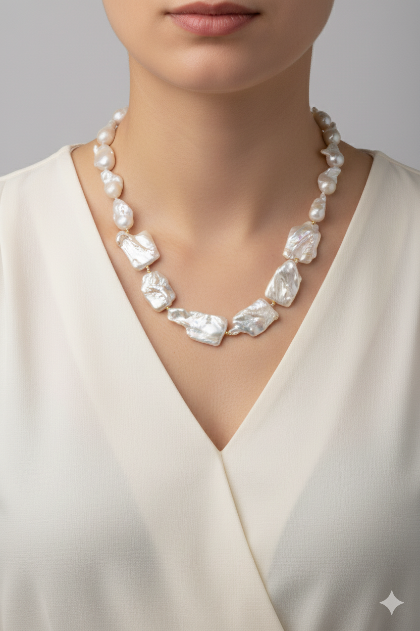 Collana Artigianale Perle Quadrate e a Goccia Argento 925