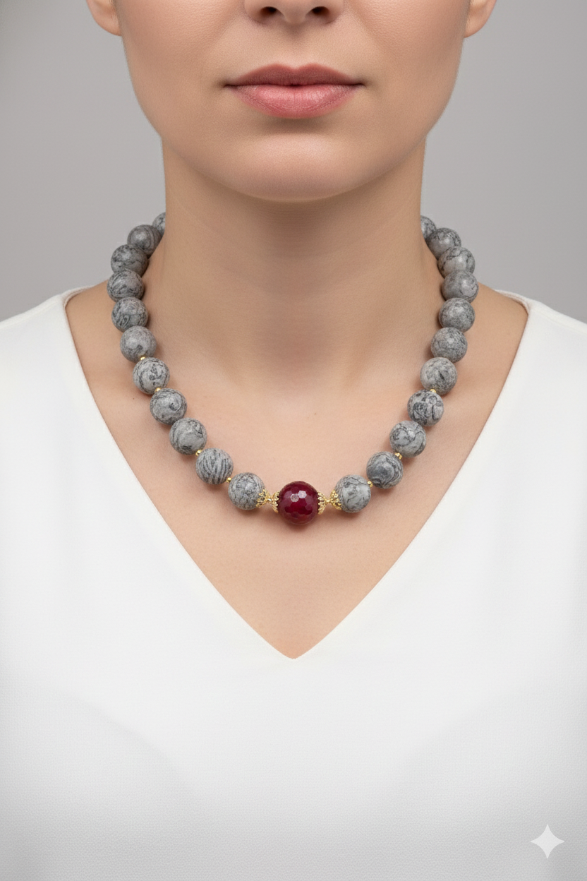 Collana Calcedonio Giada Borgogna Argento 925