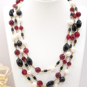 💎 Materiali: Giada borgogna, Onice, Perle, Ematite