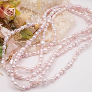 Aggiungi un tocco di eleganza e fascino al tuo look con questa elegante collana stile Chanel (o charleston) in delicate perle naturali rosa baby