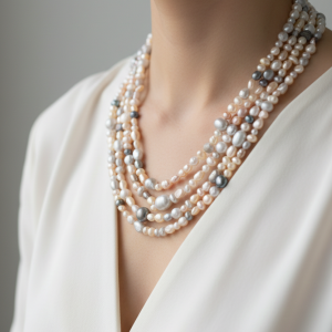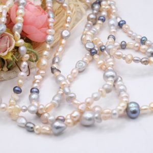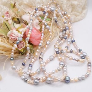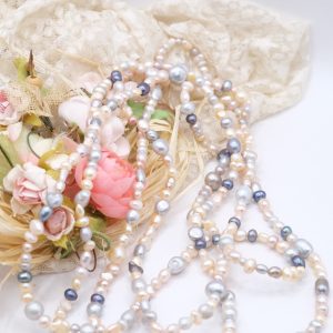Aggiungi un tocco di eleganza e fascino al tuo look con questa elegante collana stile Chanel (o charleston) in delicate perle naturali di varie sfumature nelle tinte del rosa e grigio