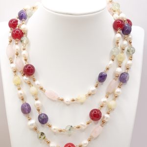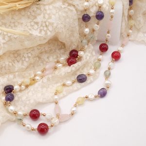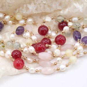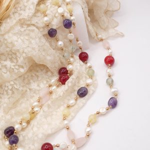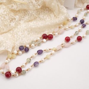 Collana Charleston Chanel Perle Quarzo Rosa Giada Borgogna Phrenite Perle Ametista Ematite