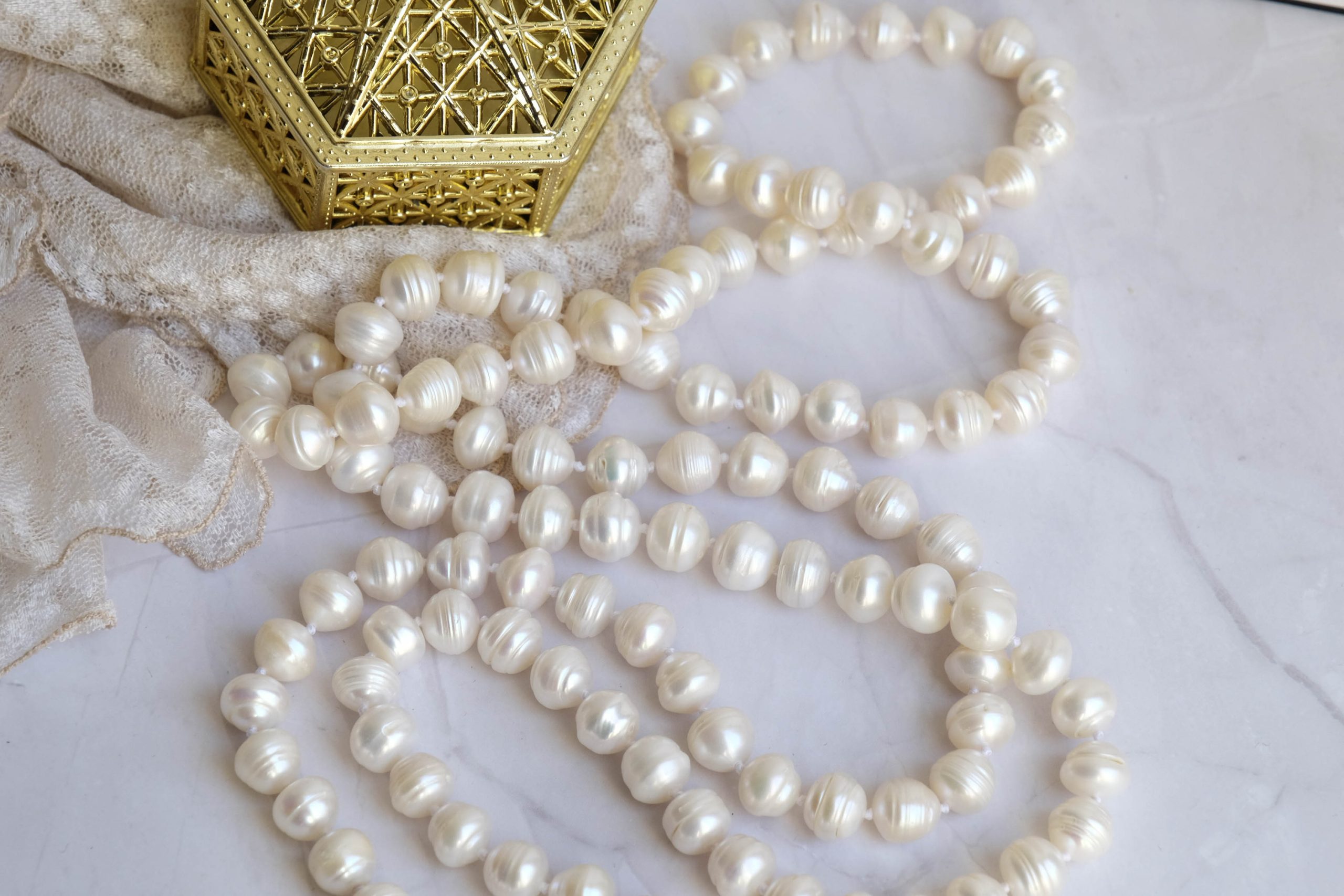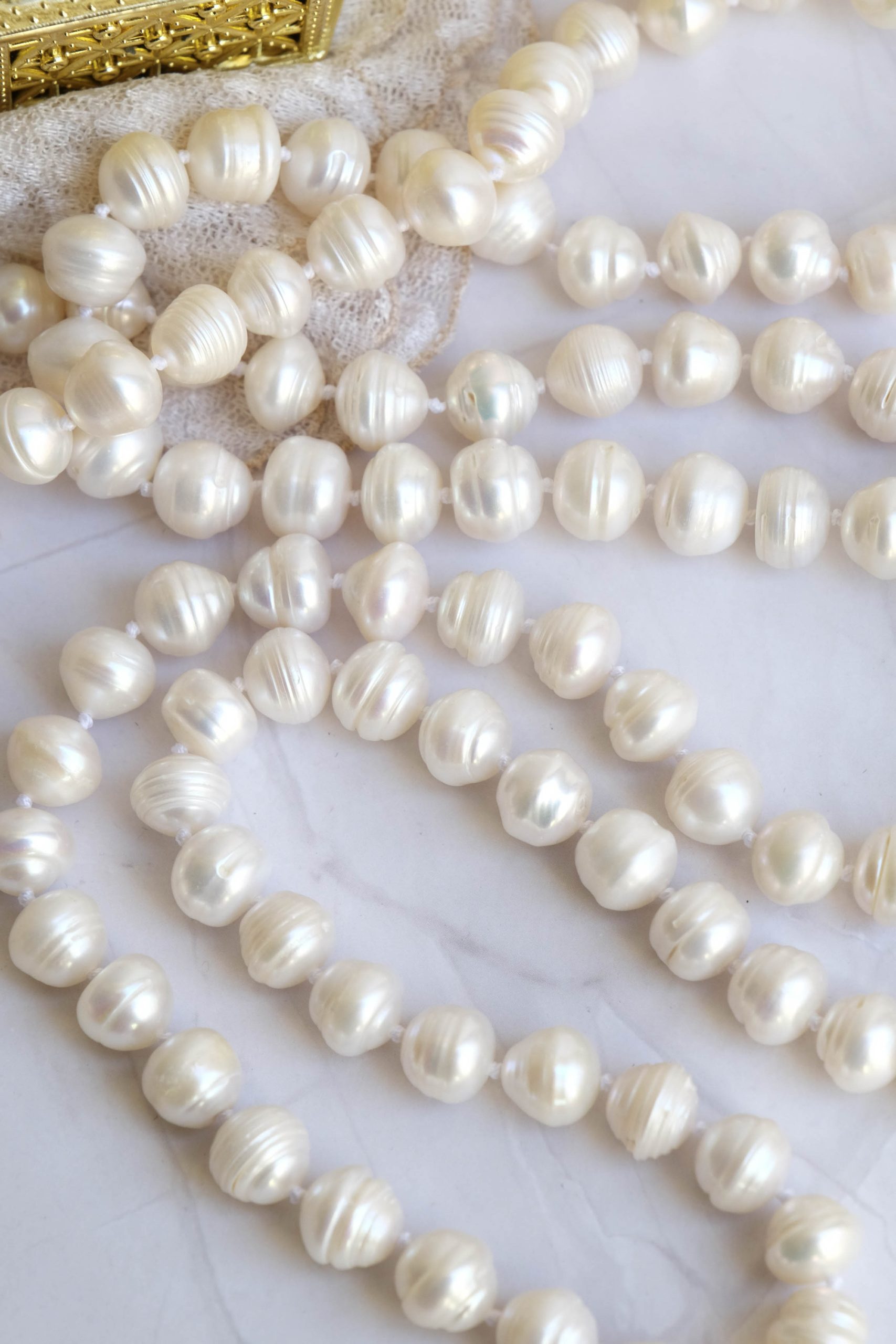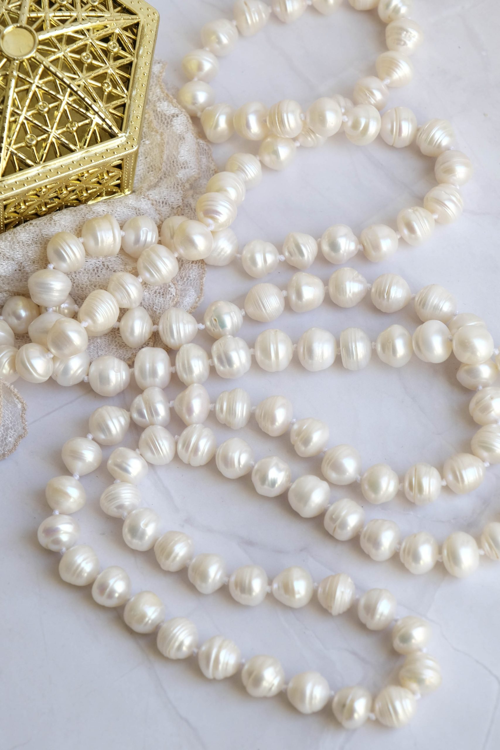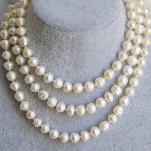 Collana Charleston Perle Naturali Bianche Lunga