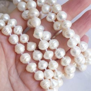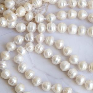Aggiungi un tocco di eleganza e fascino al tuo look con questa elegante collana stile charleston in perle bianche da 10 mm.