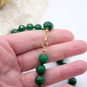 La collana è lunga 44 cm e puo essere indossata anche da sola o con altri pendenti ed è tutta annodata con filo di seta