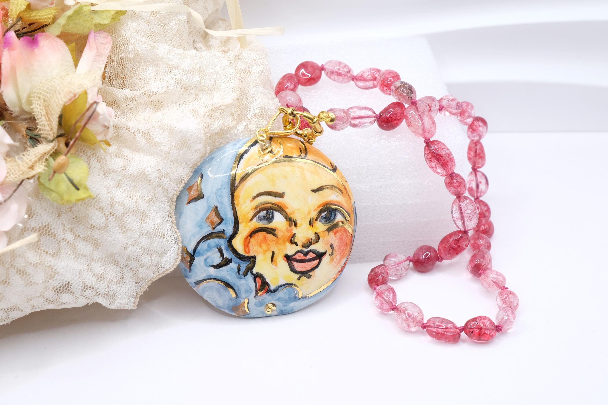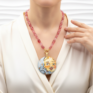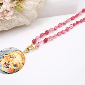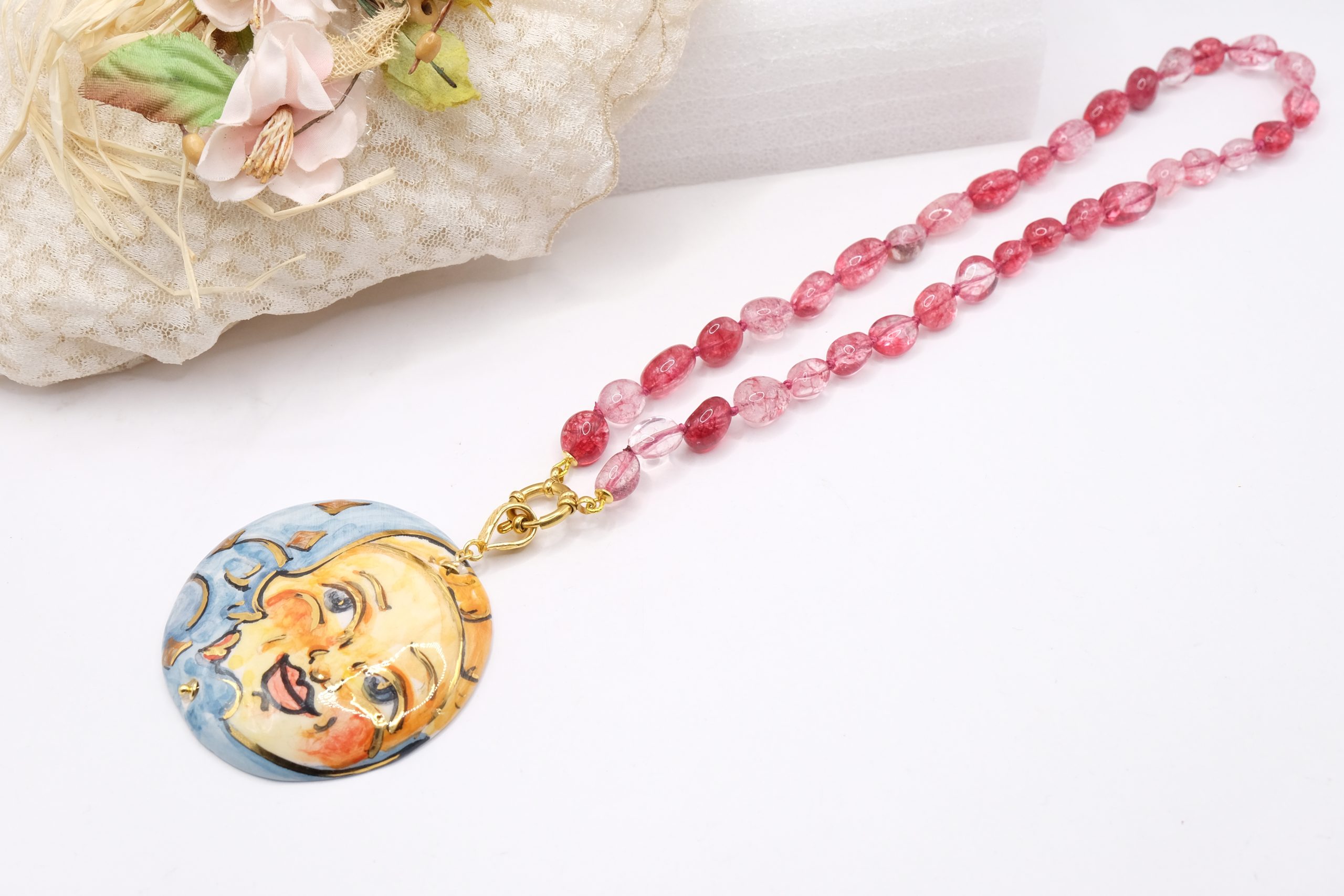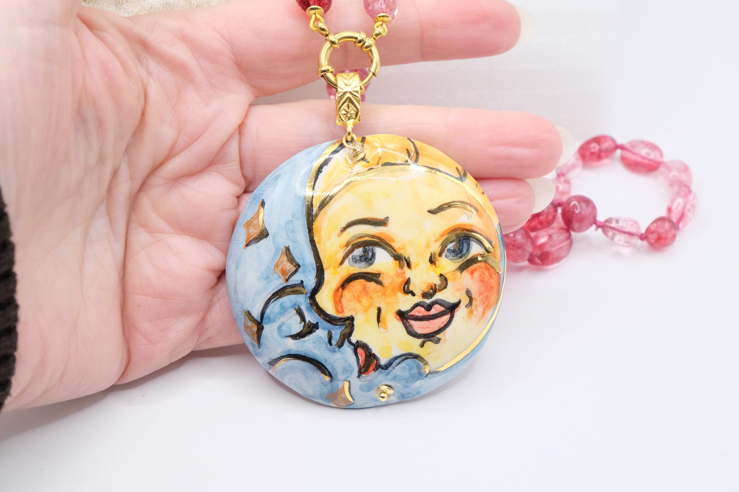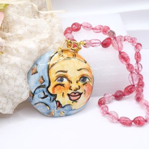 Collana Ciondolo Ceramica di Caltagirone Sole Luna Tormaline Rosa
