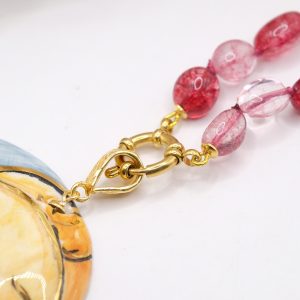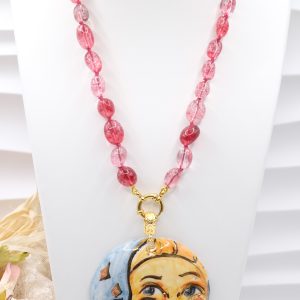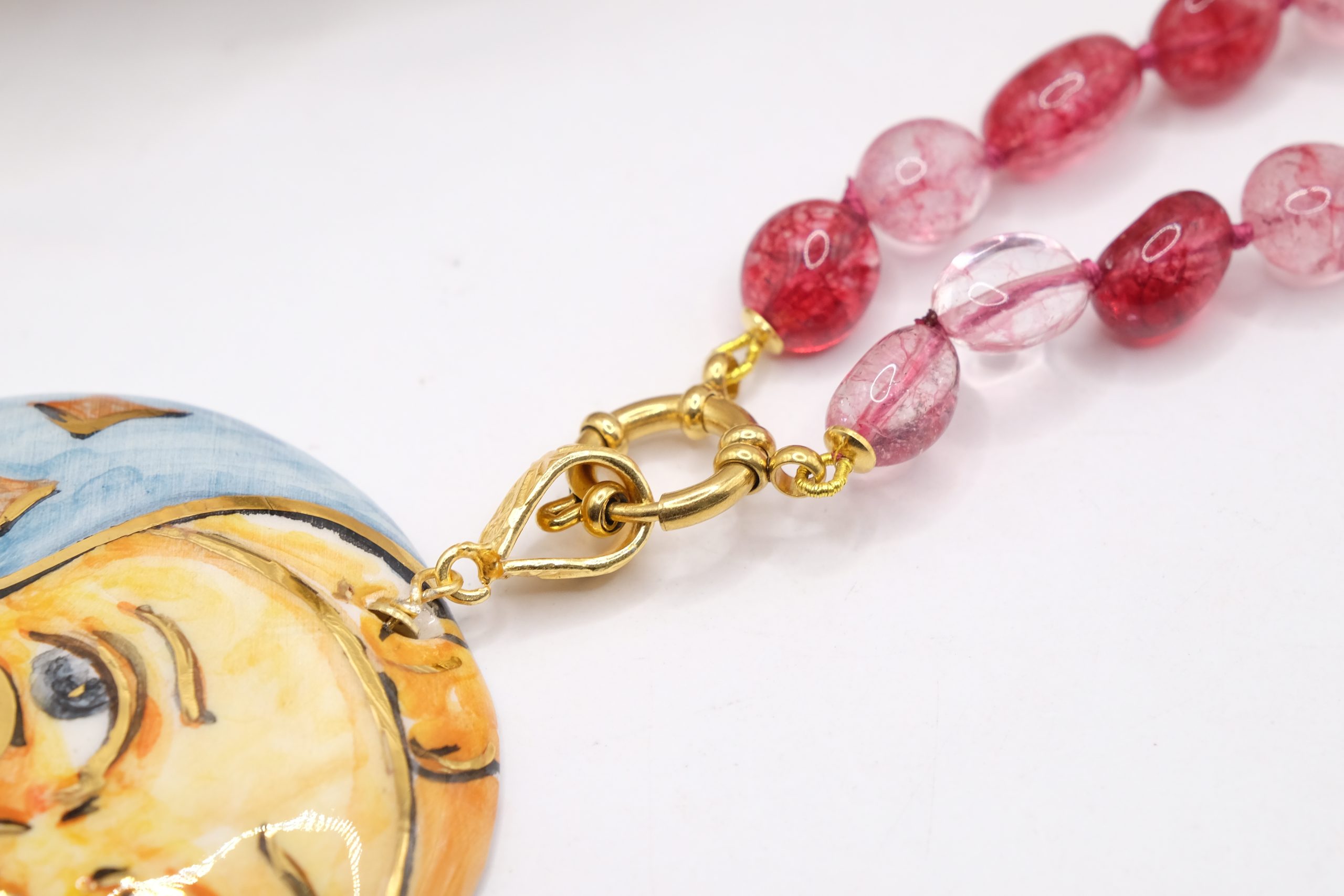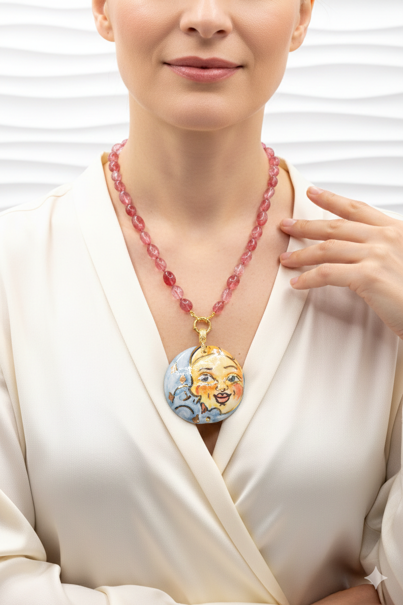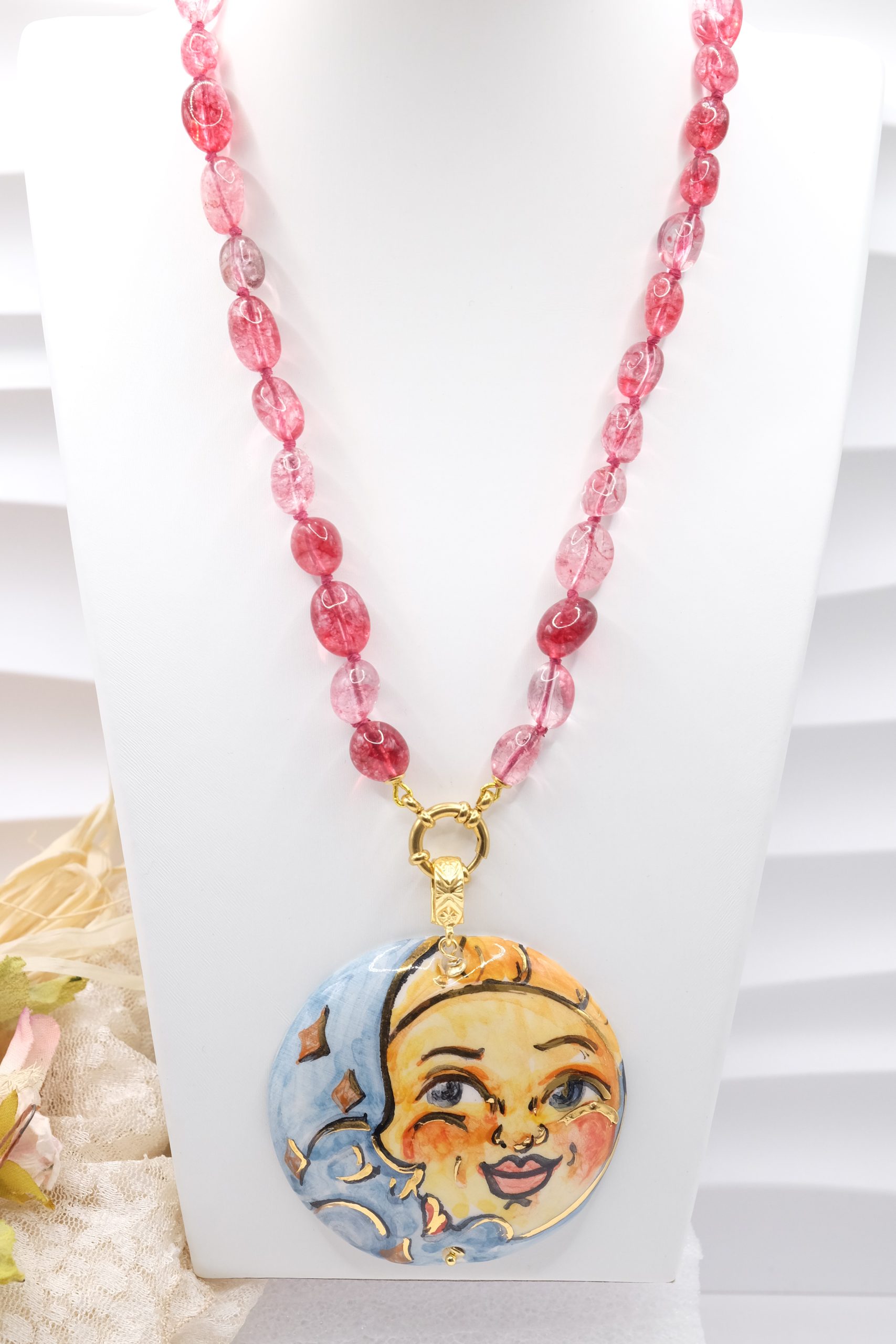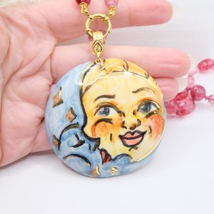 Collana Ciondolo Ceramica di Caltagirone Sole Luna Tormaline Rosa