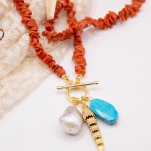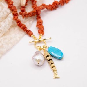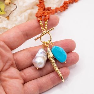 Collana Corallo Mediterraneo Perla Turchese Pesce Ambra 4 varianti