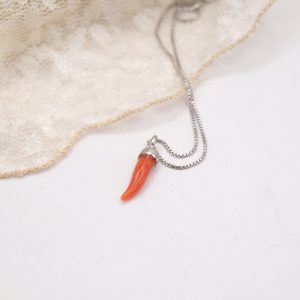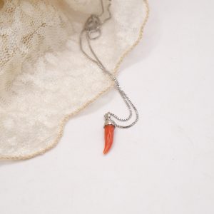 Collana Corno Corallo in Argento 925 Rodiato