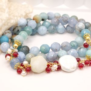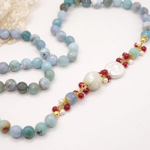 Collana Décolleté Amazzonite Grappoli Borgogna Perle