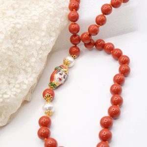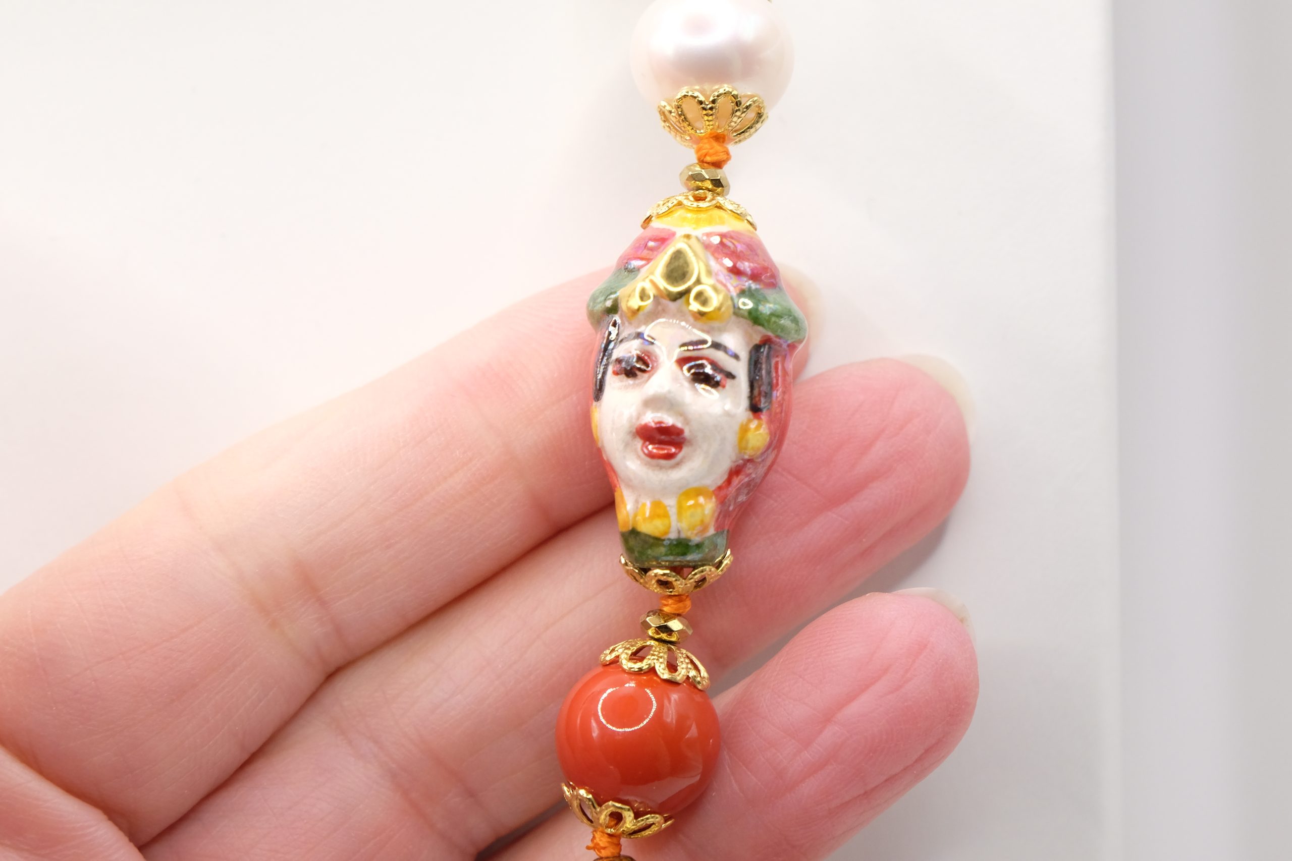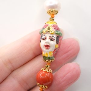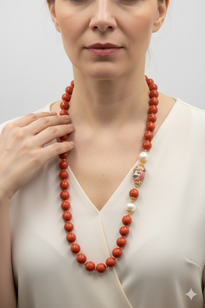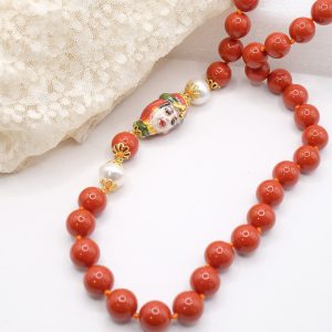 Collana Décolleté Teste Ceramica di Caltagirone Perle Pasta di Corallo
