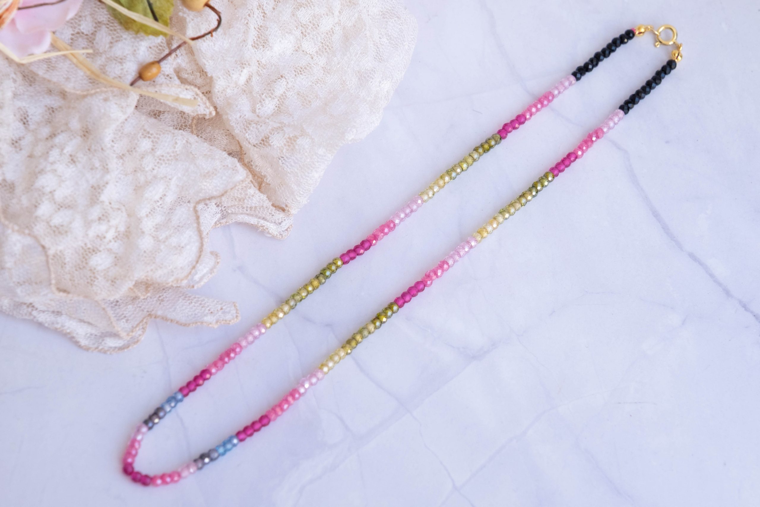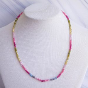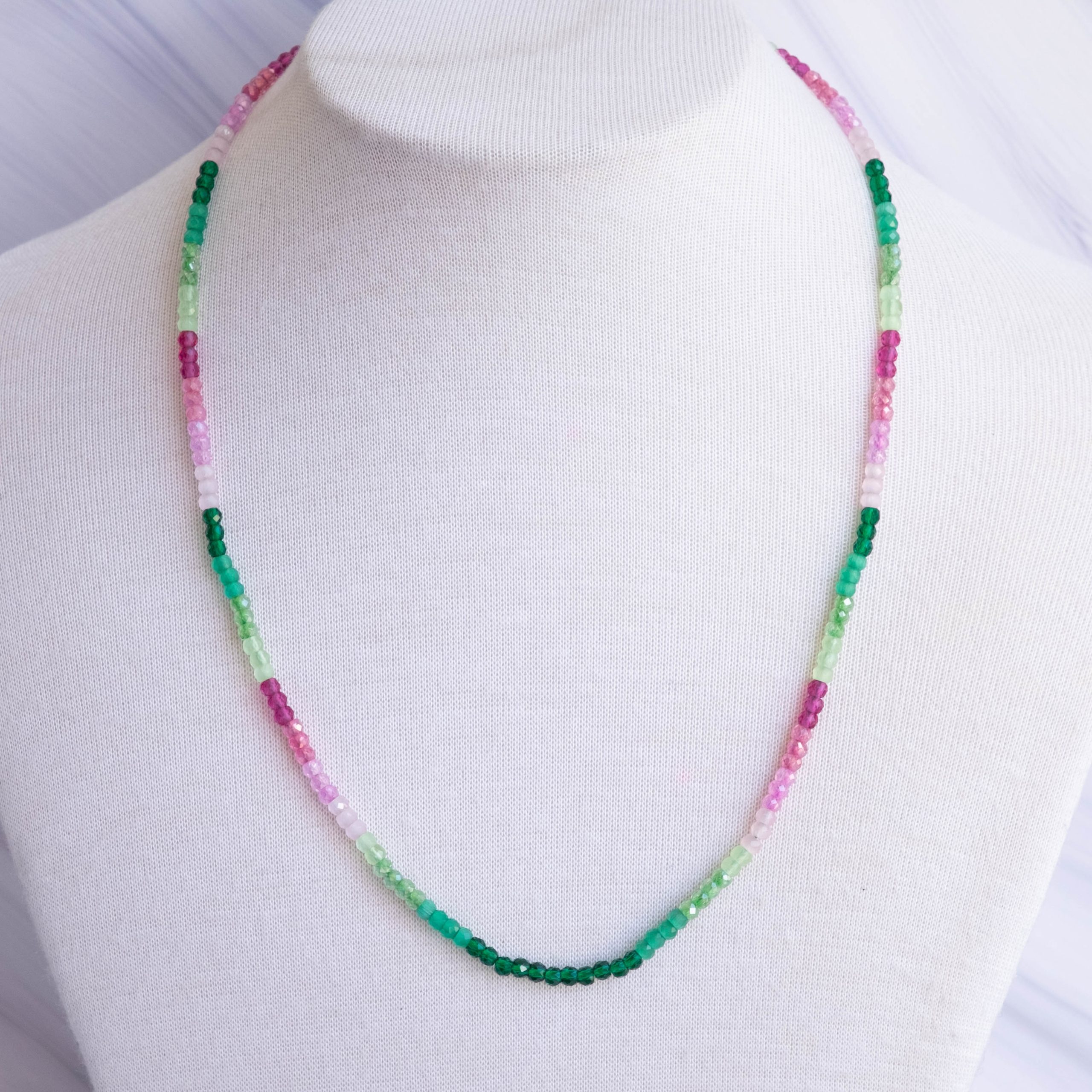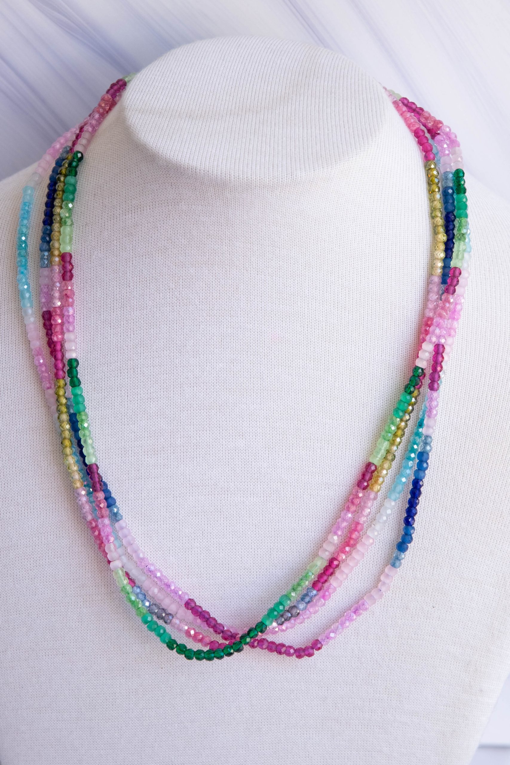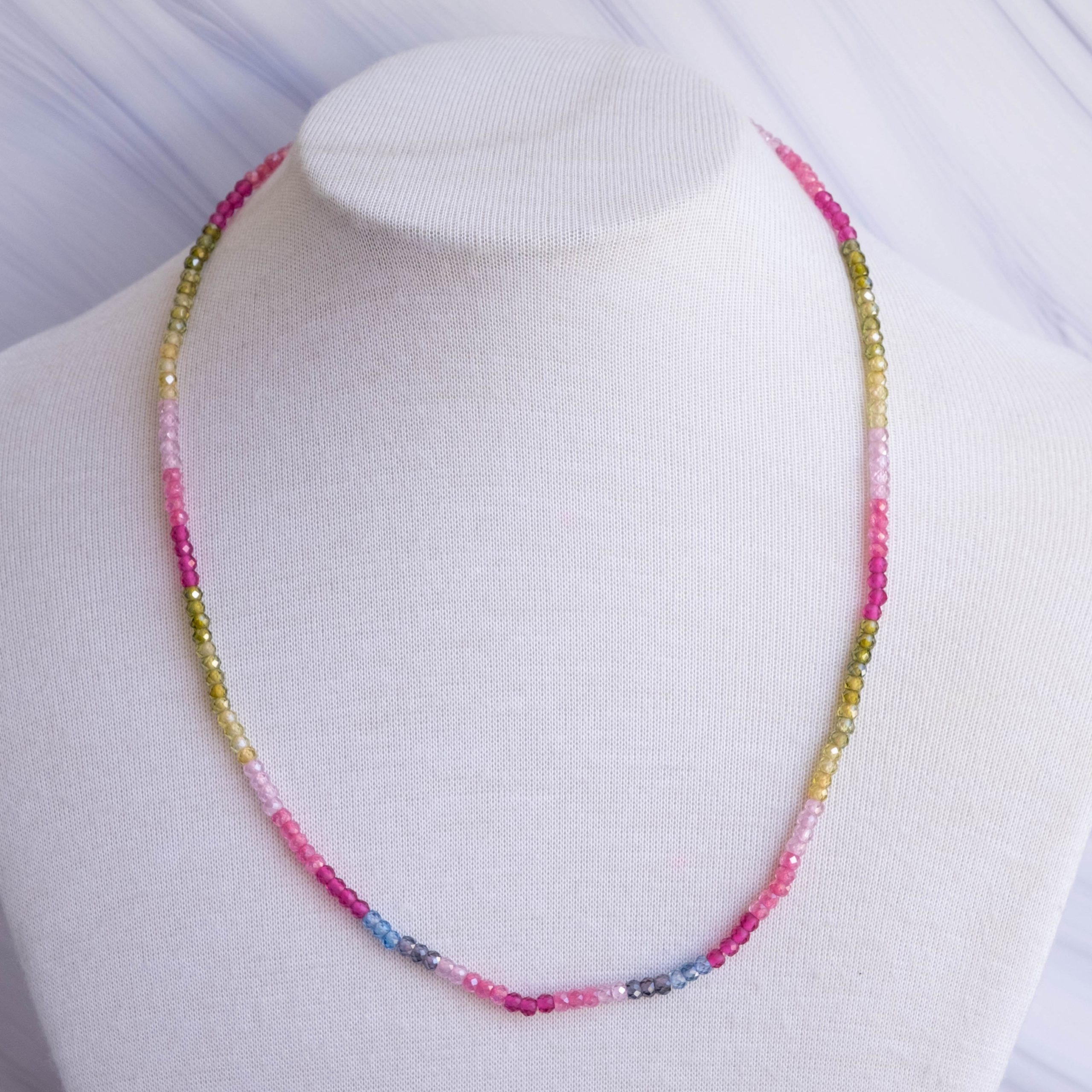 Luminosa collana, fatta interamente a mano, con zirconi naturali sfaccettati di varie sfumature naturali