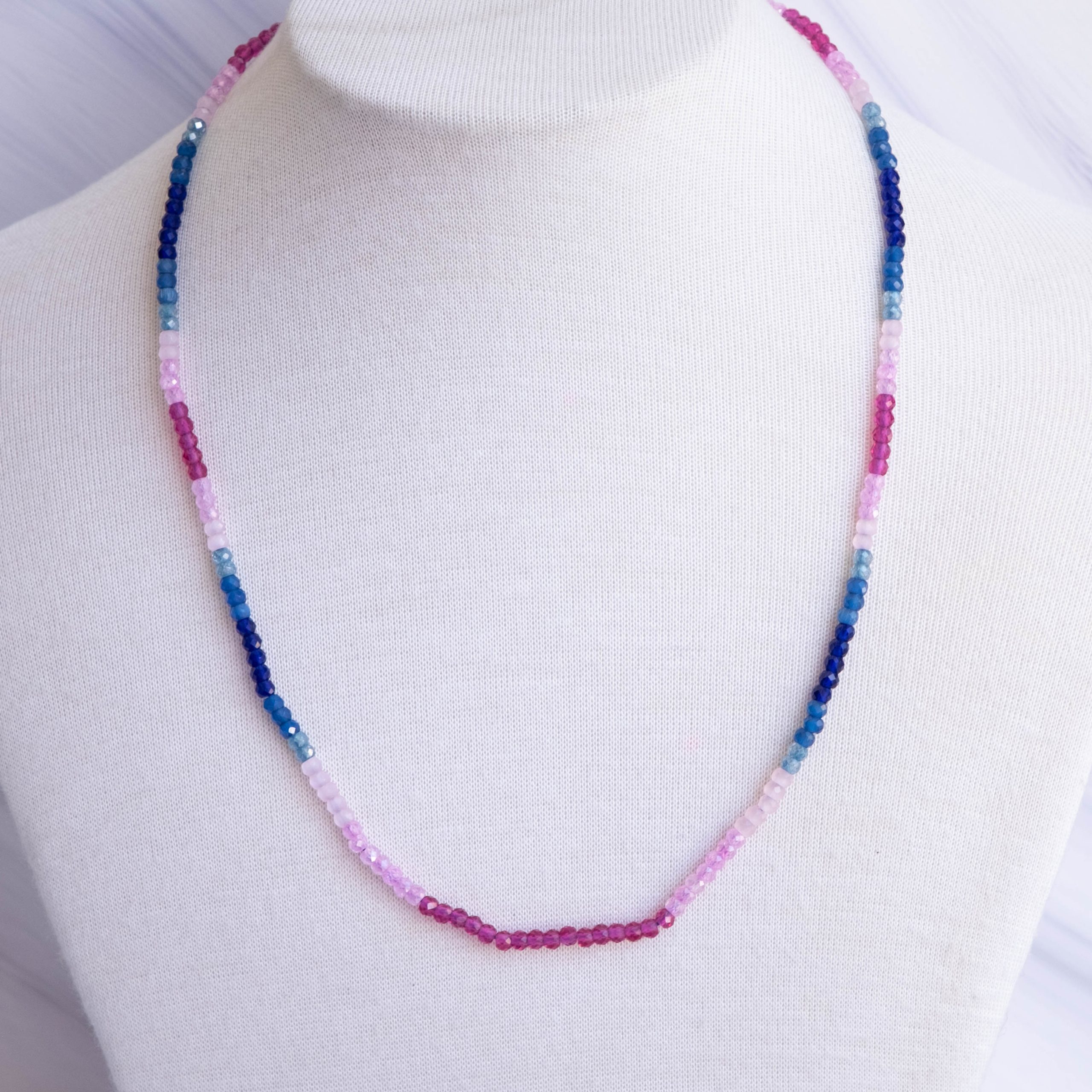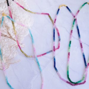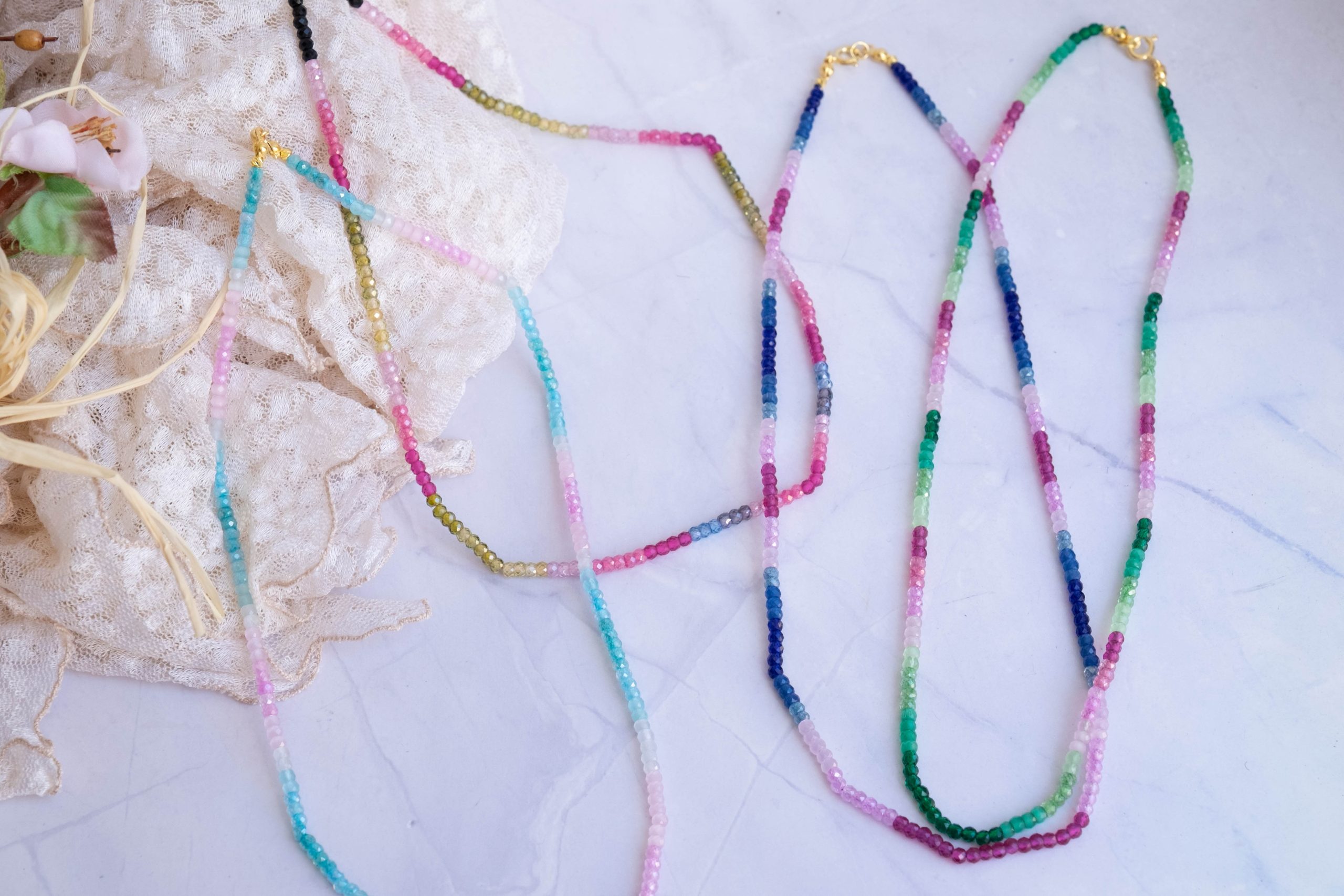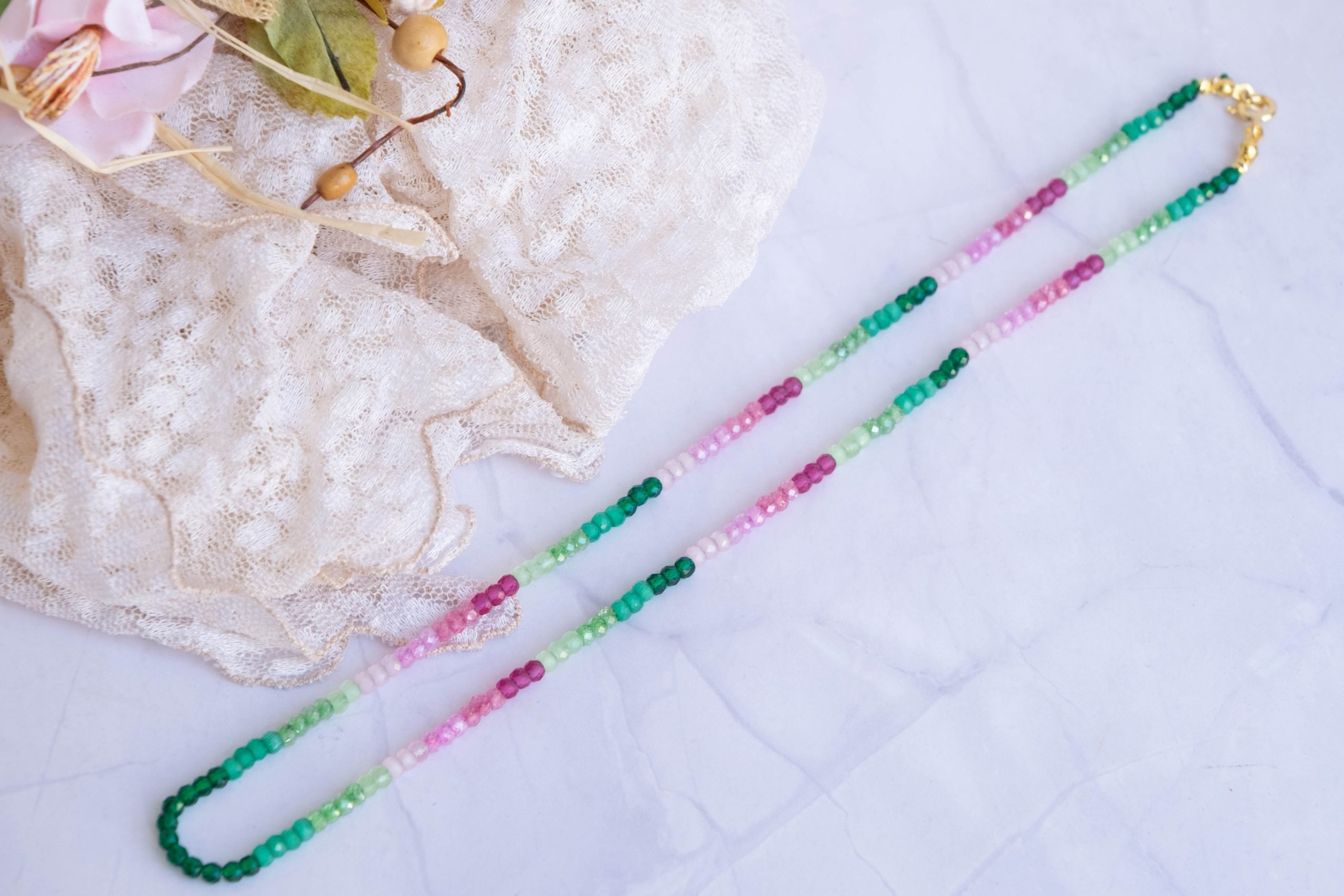 Luminosa collana, fatta interamente a mano, con zirconi naturali sfaccettati di varie sfumature naturali
